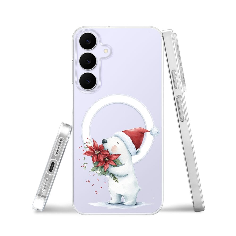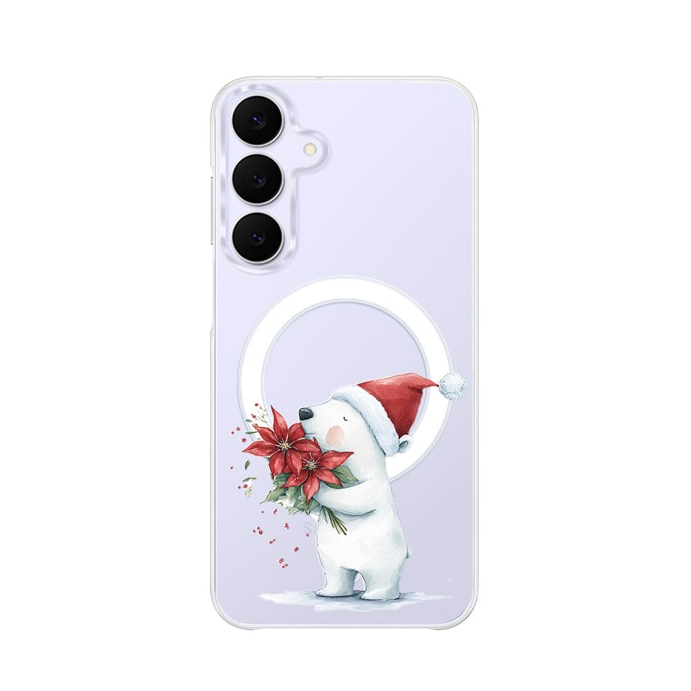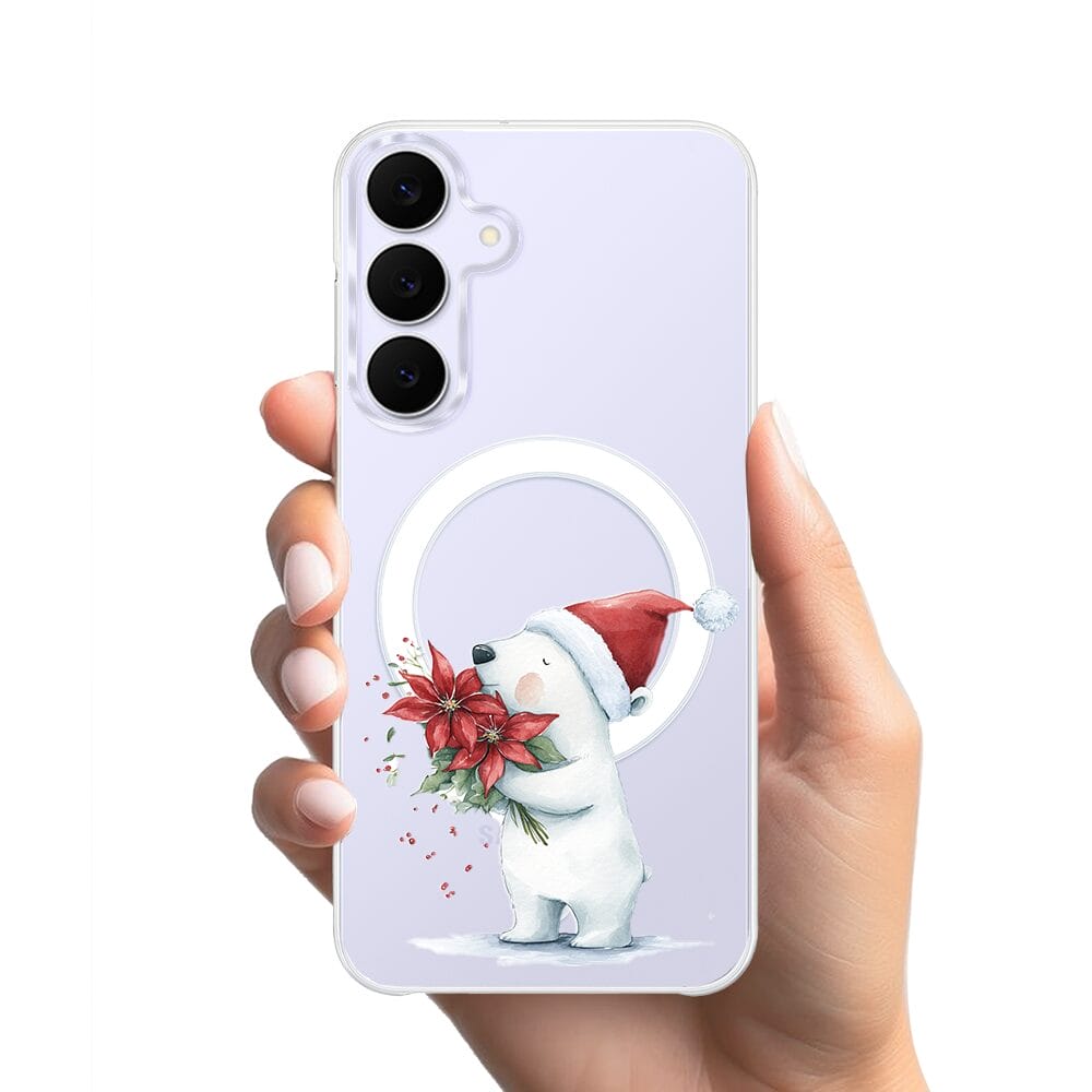 Etui do Samsung Galaxy S25 FE z MagSafe przeźroczyste, silikonowe Flexi, Przytulne święta, Miś świąteczny