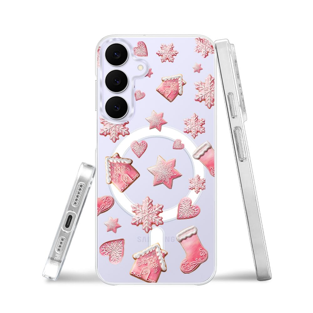 Etui do Samsung Galaxy S25 FE z MagSafe przeźroczyste, silikonowe Flexi, Przytulne święta, Różowe pierniczki
