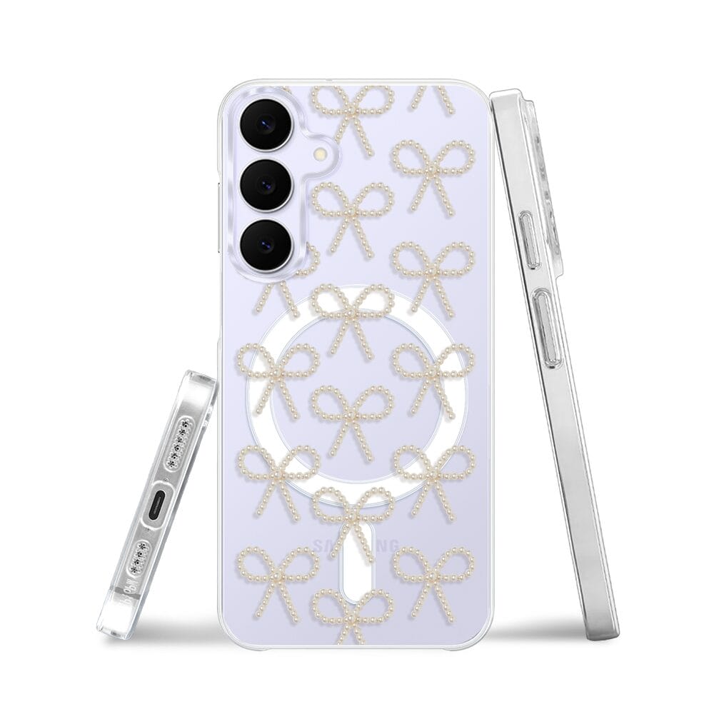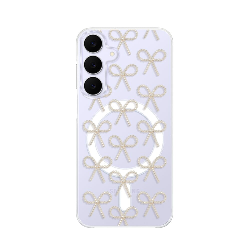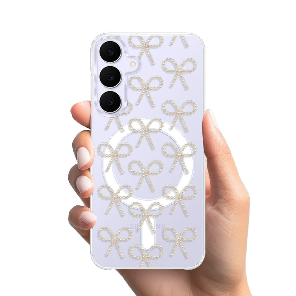 Etui do Samsung Galaxy S25 FE z MagSafe przeźroczyste, silikonowe Flexi, Przytulne święta, złote kokardki