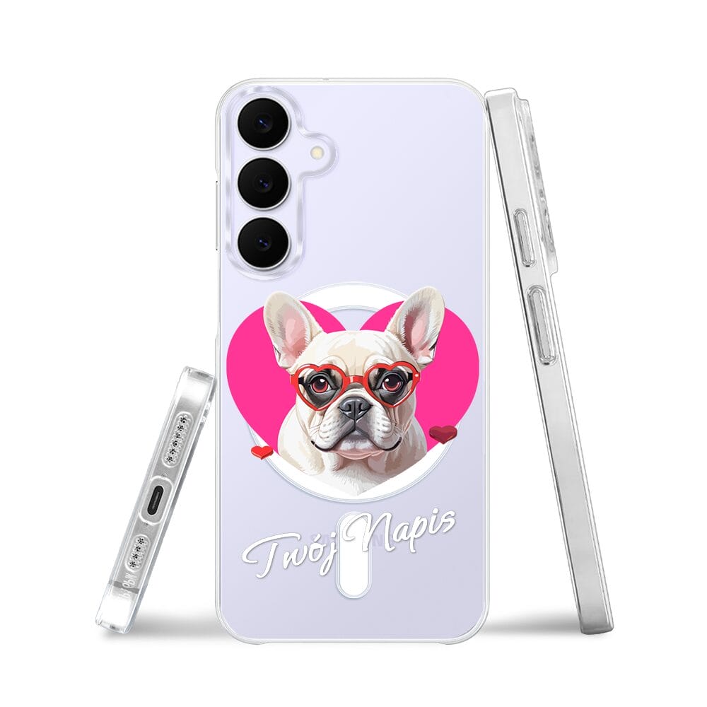 Etui do Samsung Galaxy S25 FE z MagSafe przeźroczyste, silikonowe Flexi, Puppy Love, pies rasy Buldog Francuski