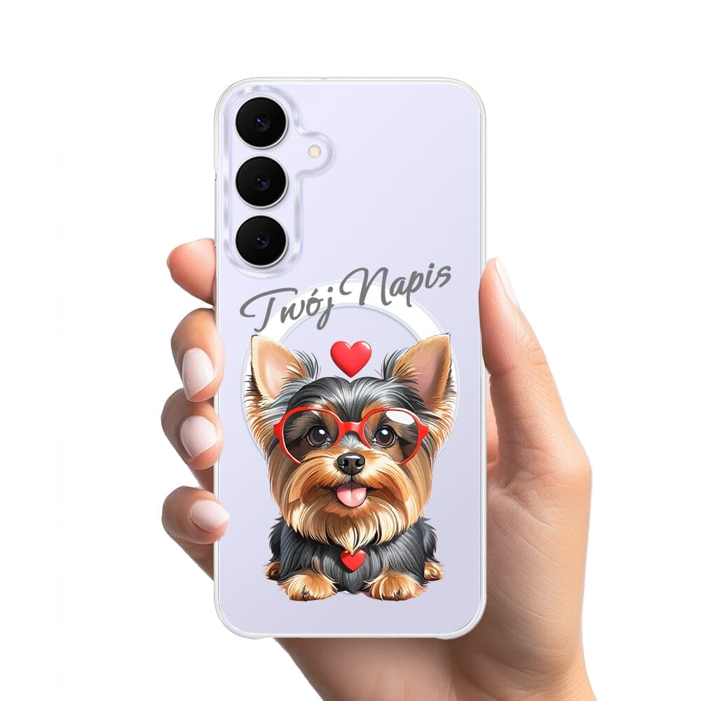 Etui do Samsung Galaxy S25 FE z MagSafe przeźroczyste, silikonowe Flexi, Puppy Love, pies rasy York