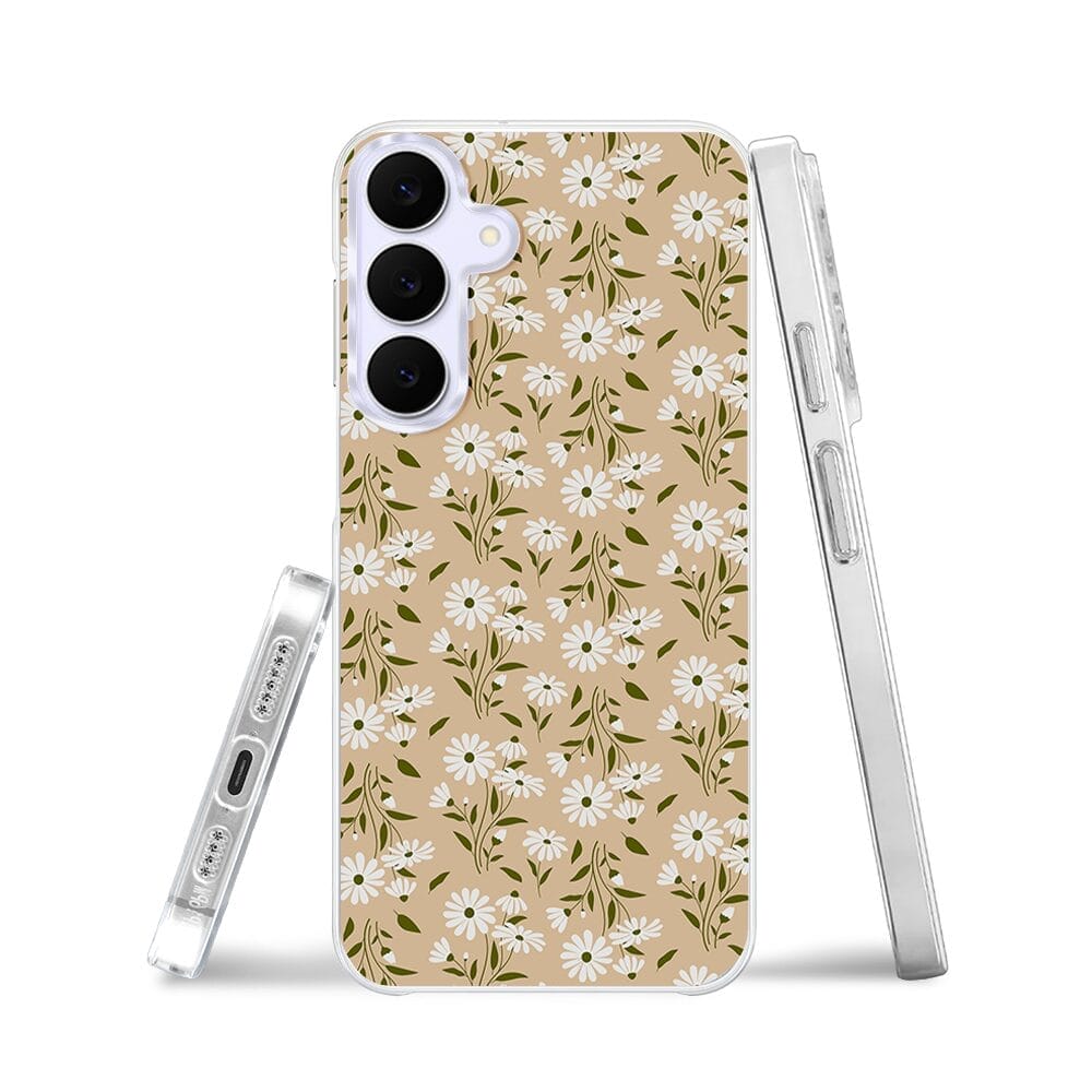 Etui do Samsung Galaxy S25 FE z MagSafe przeźroczyste, silikonowe Flexi, Summer Patterns, delikatne kwiatki na cielistym tle