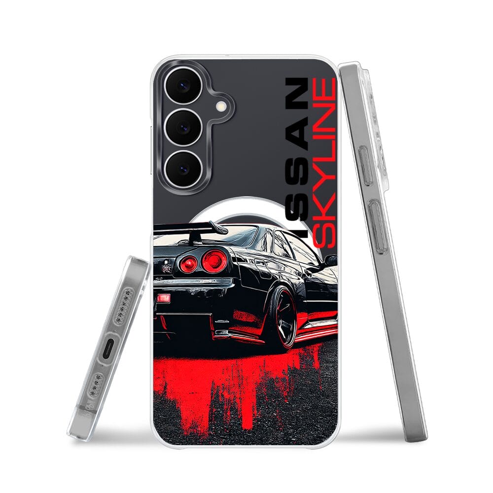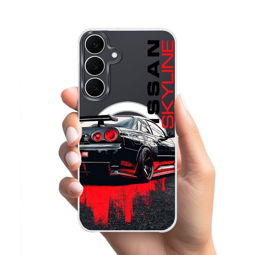 Etui do Samsung Galaxy S25 FE z MagSafe przeźroczyste, silikonowe Flexi, Szybkie Auta, czarny Skyline