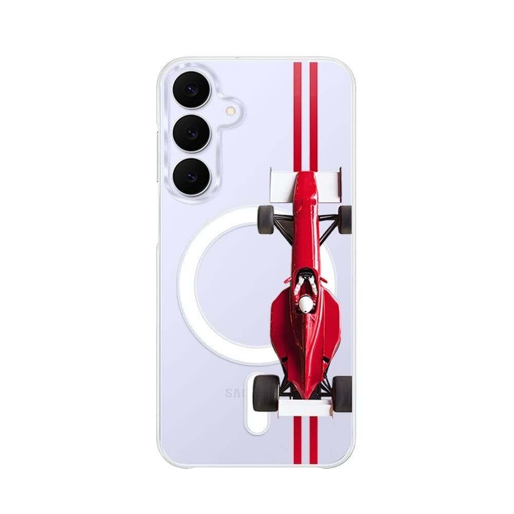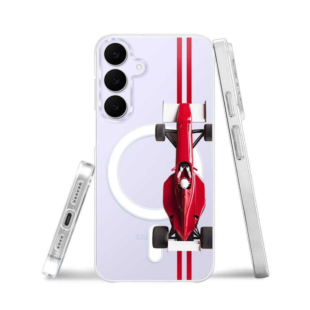 Etui do Samsung Galaxy S25 FE z MagSafe przeźroczyste, silikonowe Flexi, Szybkie Auta, czerwone F1