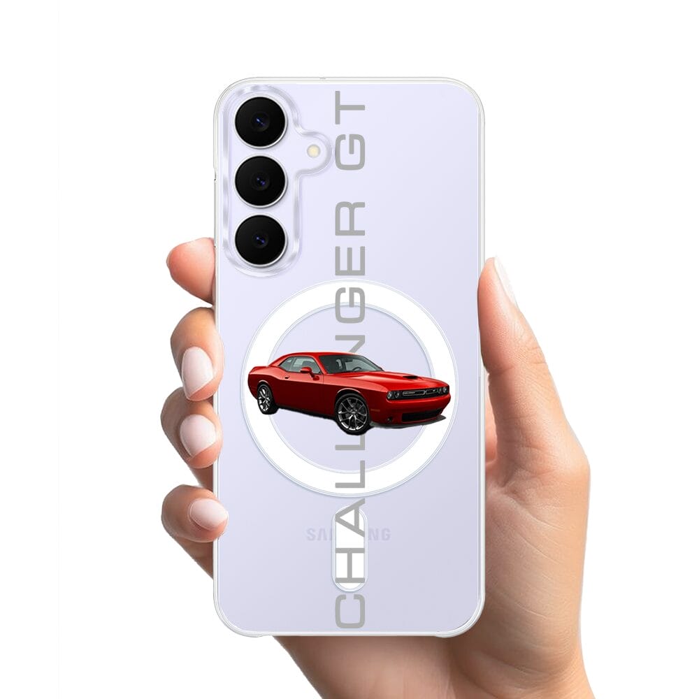 Etui do Samsung Galaxy S25 FE z MagSafe przeźroczyste, silikonowe Flexi, Szybkie Auta, czerwony Challenger GT