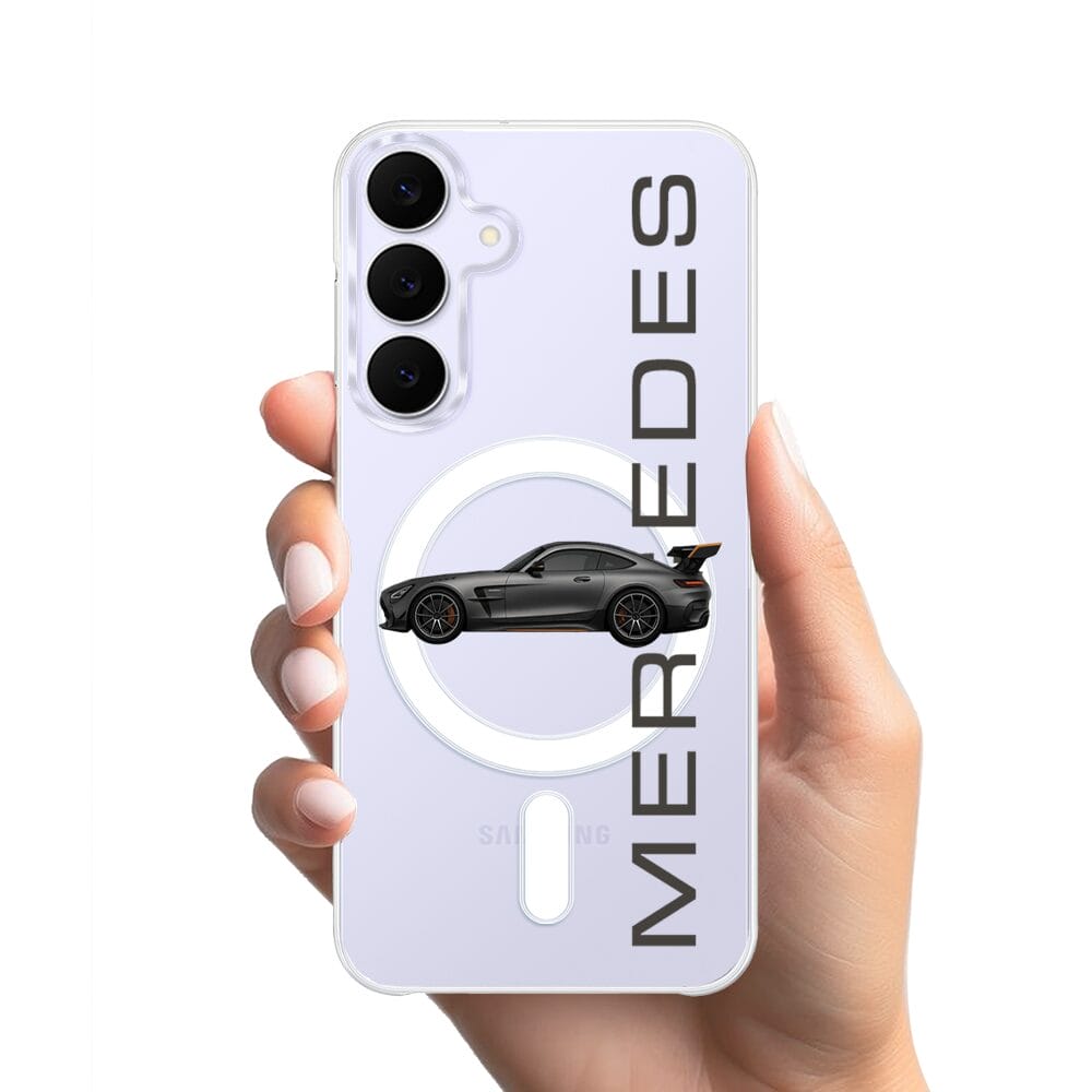 Etui do Samsung Galaxy S25 FE z MagSafe przeźroczyste, silikonowe Flexi, Szybkie Auta, Stalowe AMG-GT