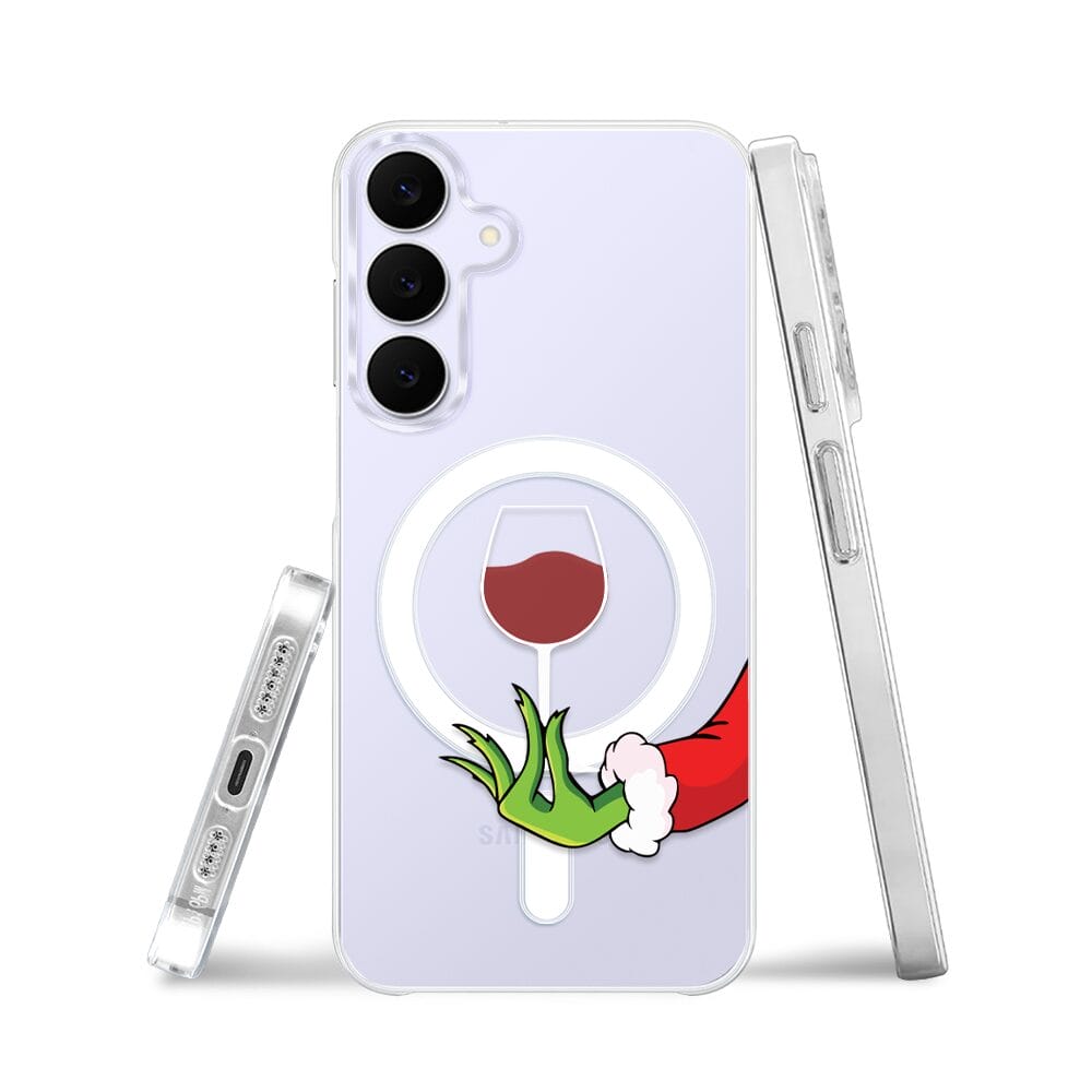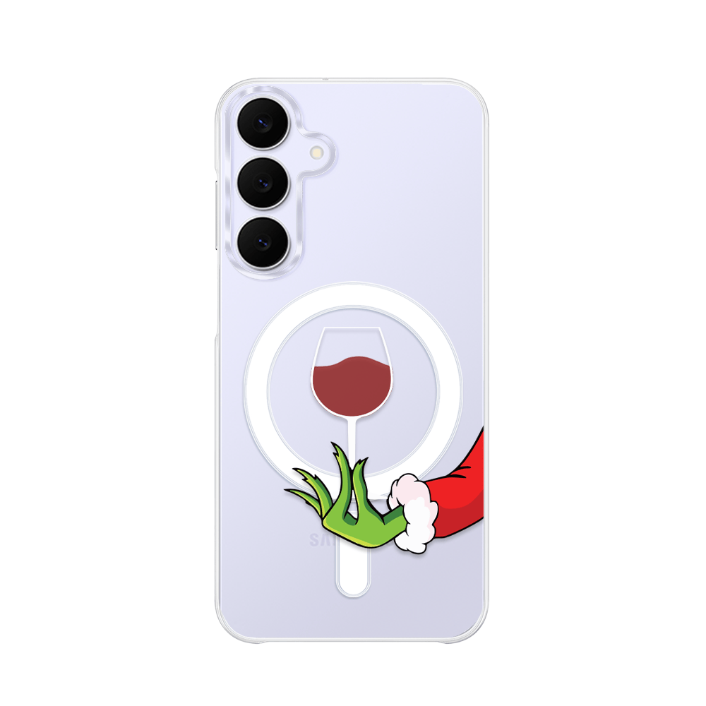 Etui do Samsung Galaxy S25 FE z MagSafe przeźroczyste, silikonowe Flexi, Zielony psotnik z lampką wina