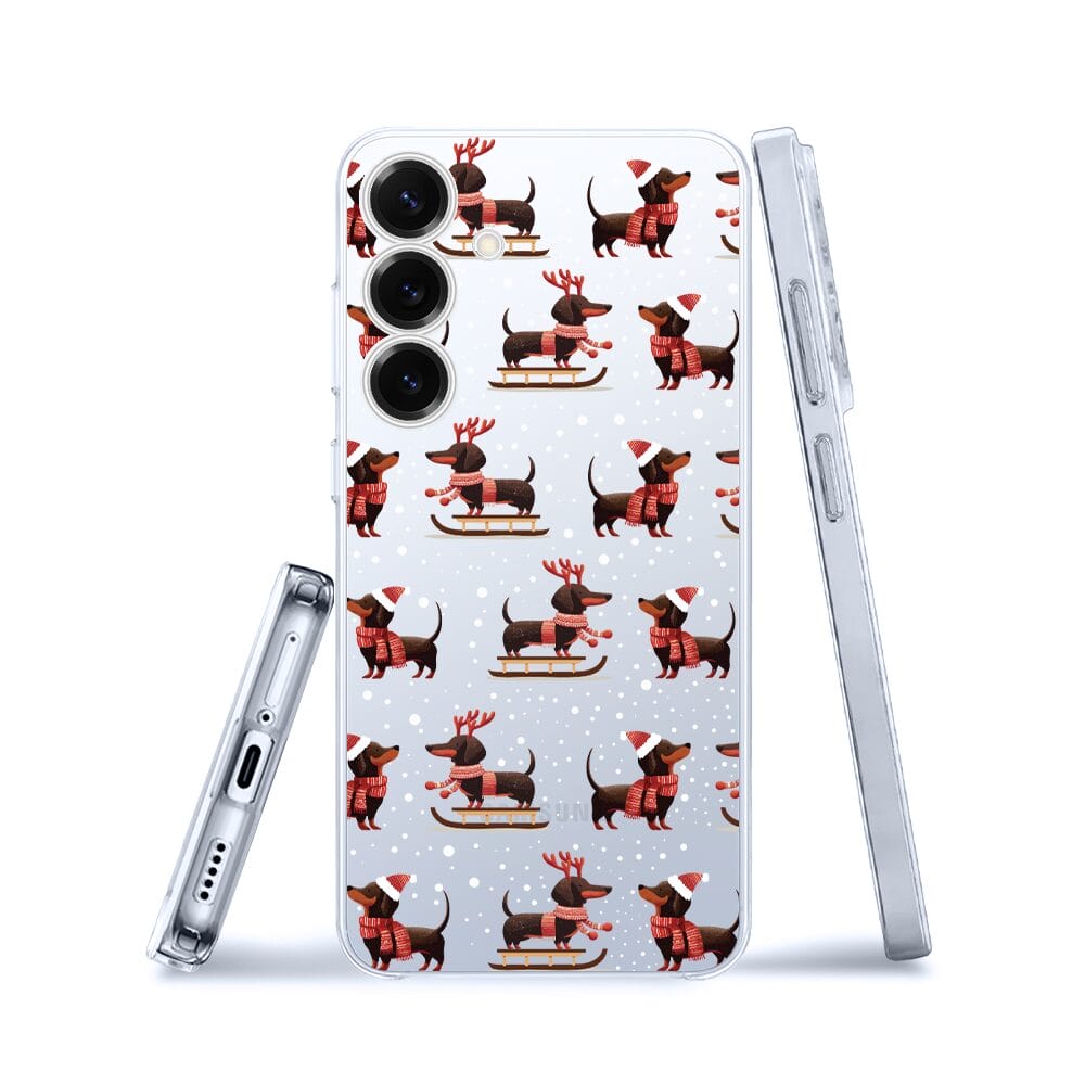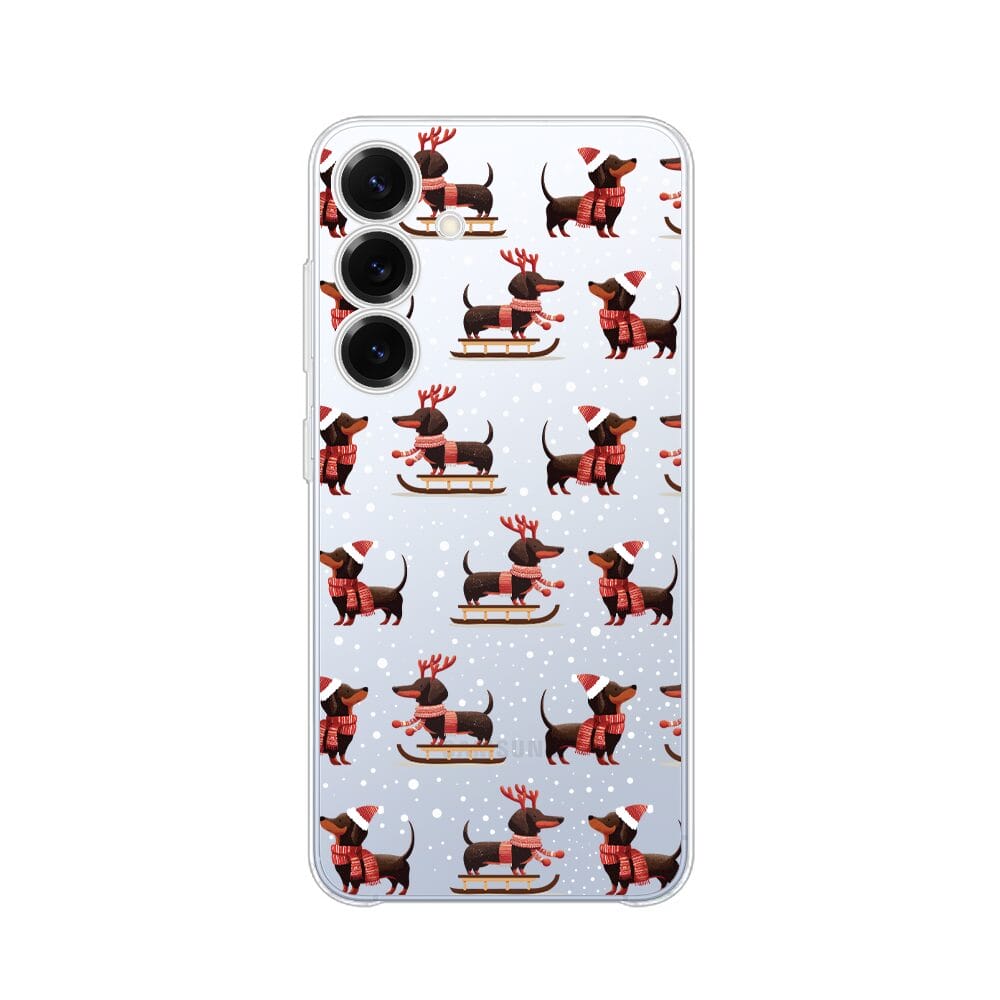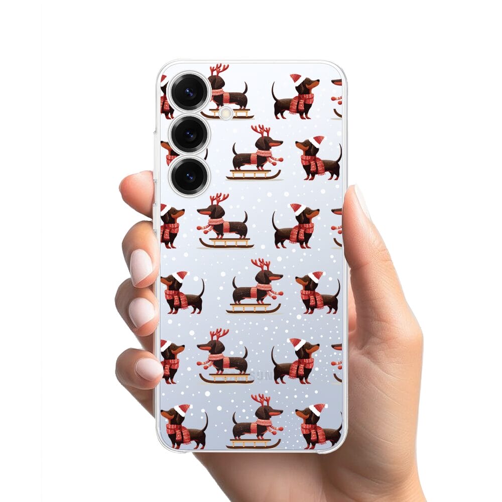 Etui do Samsung Galaxy S25 Plus przeźroczyste, silikonowe Flexi, Przytulne święta, Jamniki na saniach