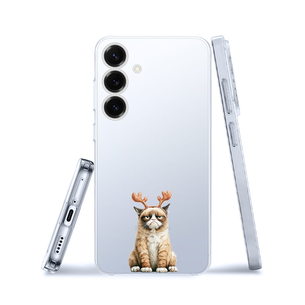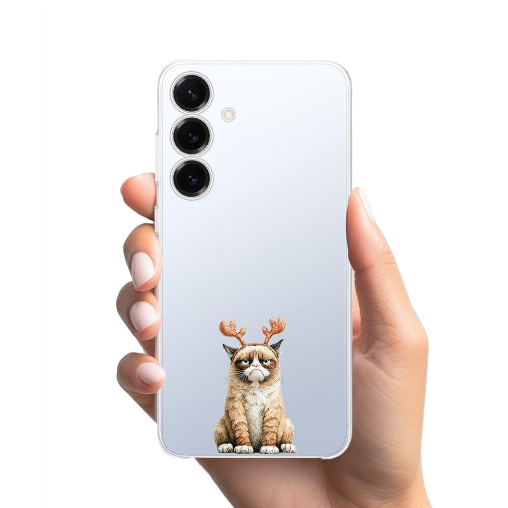 Etui do Samsung Galaxy S25 Plus przeźroczyste, silikonowe Flexi, Przytulne święta, Kot który nie chciał być reniferem