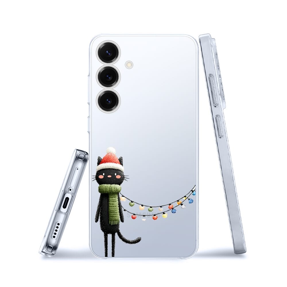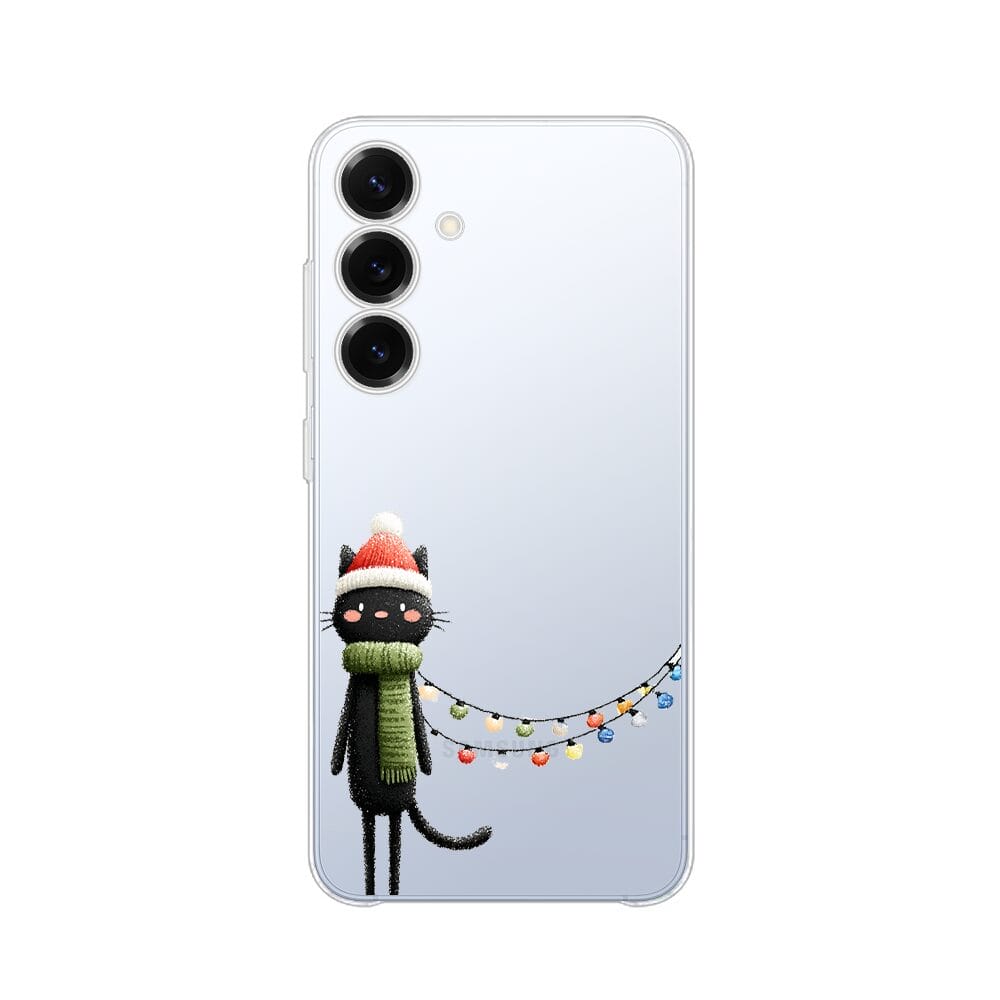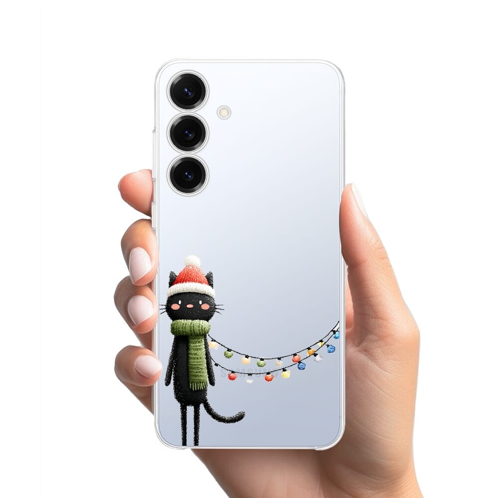 Etui do Samsung Galaxy S25 Plus przeźroczyste, silikonowe Flexi, Przytulne święta, Kot przebrany za elfa