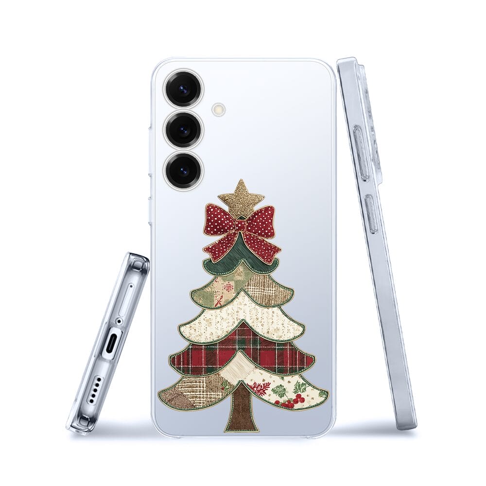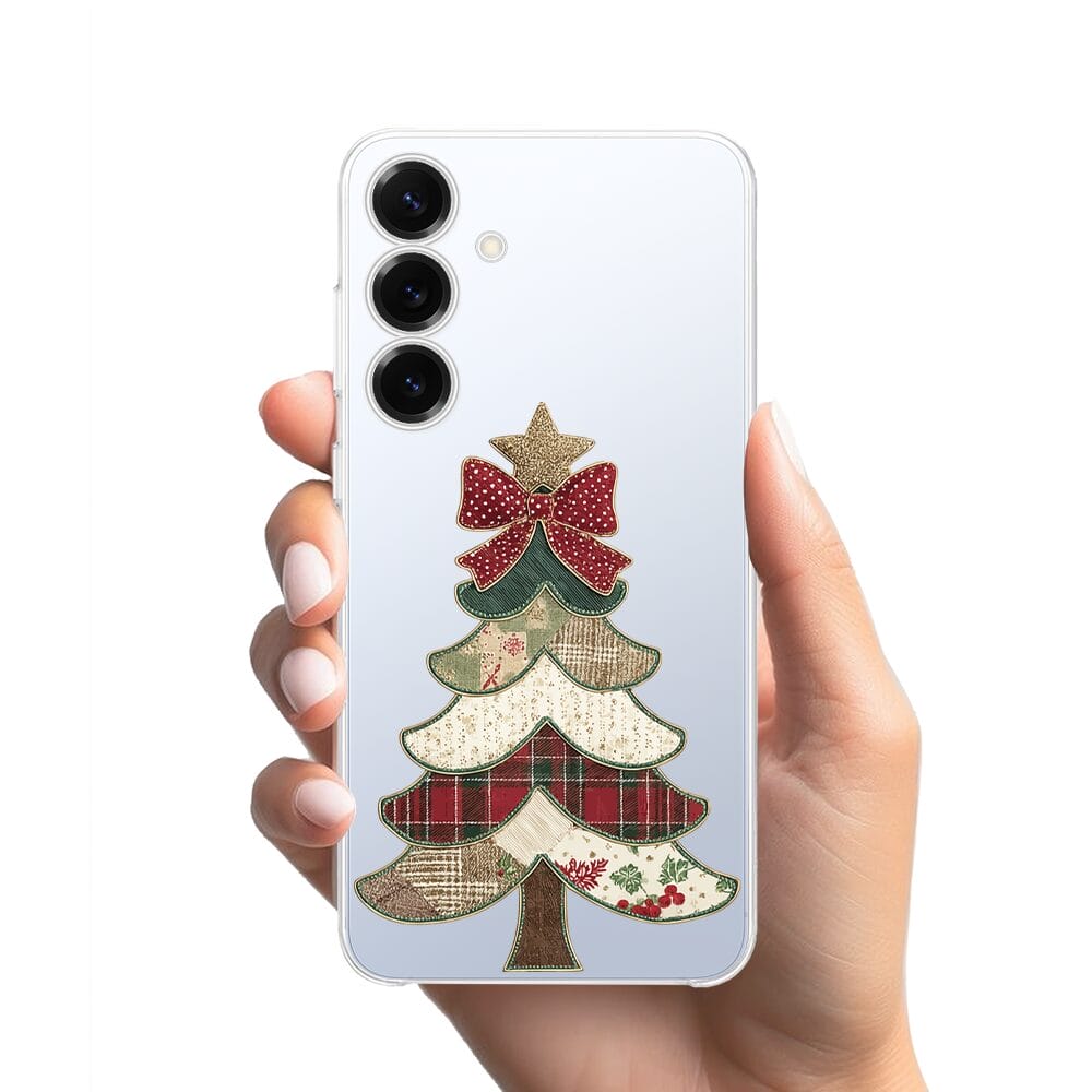 Etui do Samsung Galaxy S25 Plus przeźroczyste, silikonowe Flexi, Przytulne święta, Kraciasta choinka