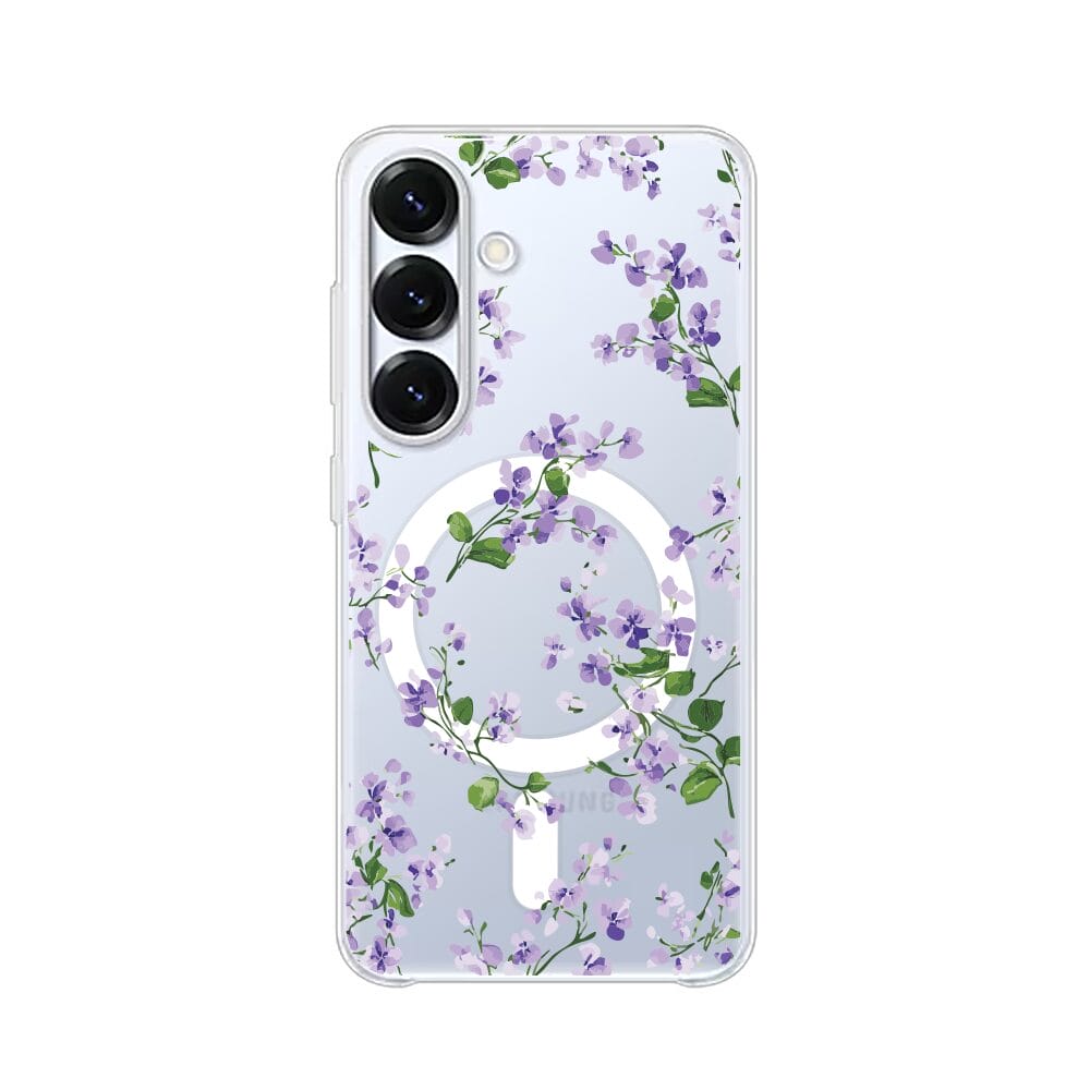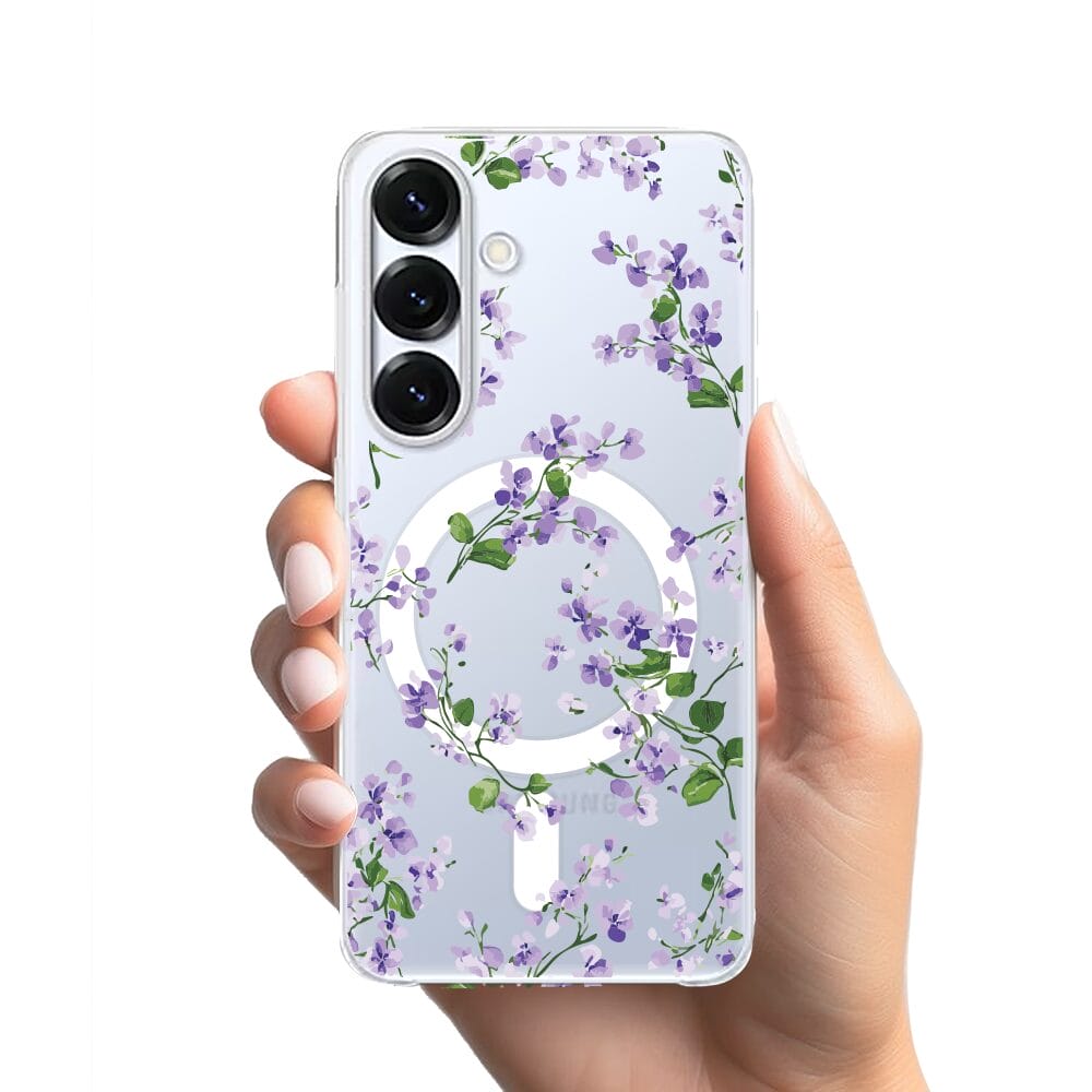 Etui do Samsung Galaxy S25 Plus z MagSafe przeźroczyste, silikonowe Flexi, Fioletowe Bratki