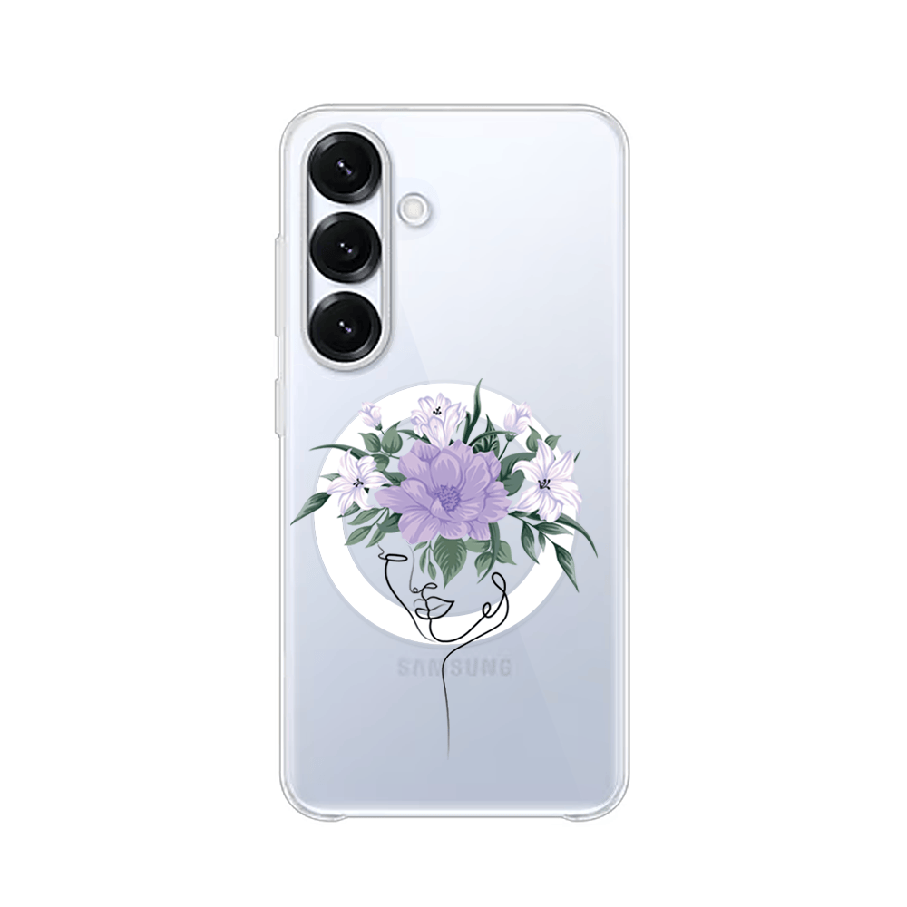 Etui do Samsung Galaxy S25 Plus z MagSafe przeźroczyste, silikonowe Flexi, kobieta z kwiatami