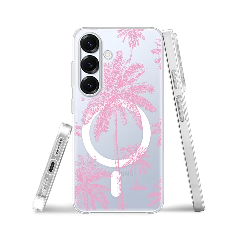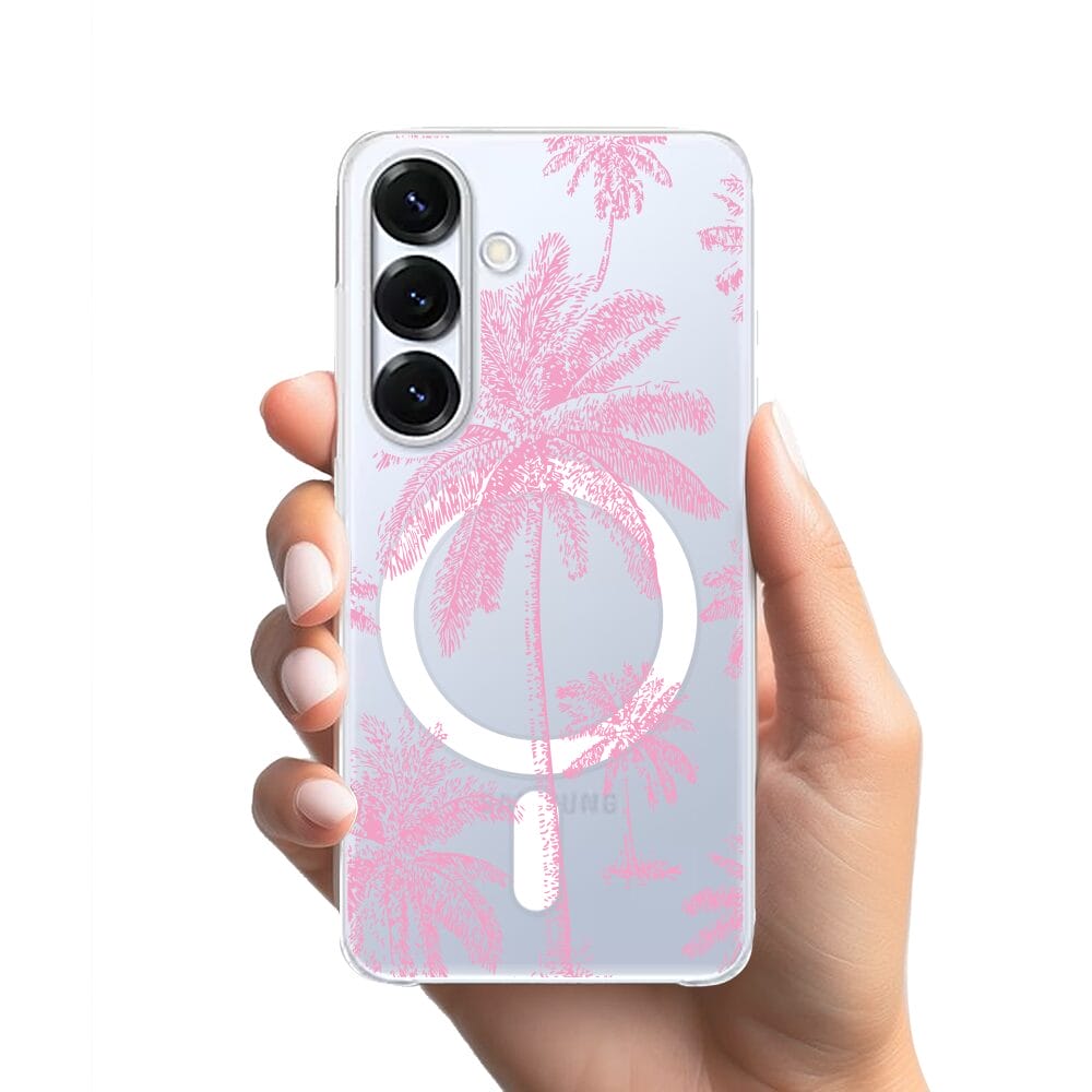 Etui do Samsung Galaxy S25 Plus z MagSafe przeźroczyste, silikonowe Flexi, Mystic, Różowe palmy