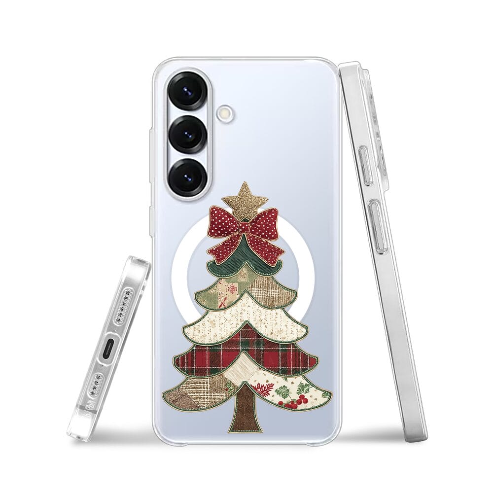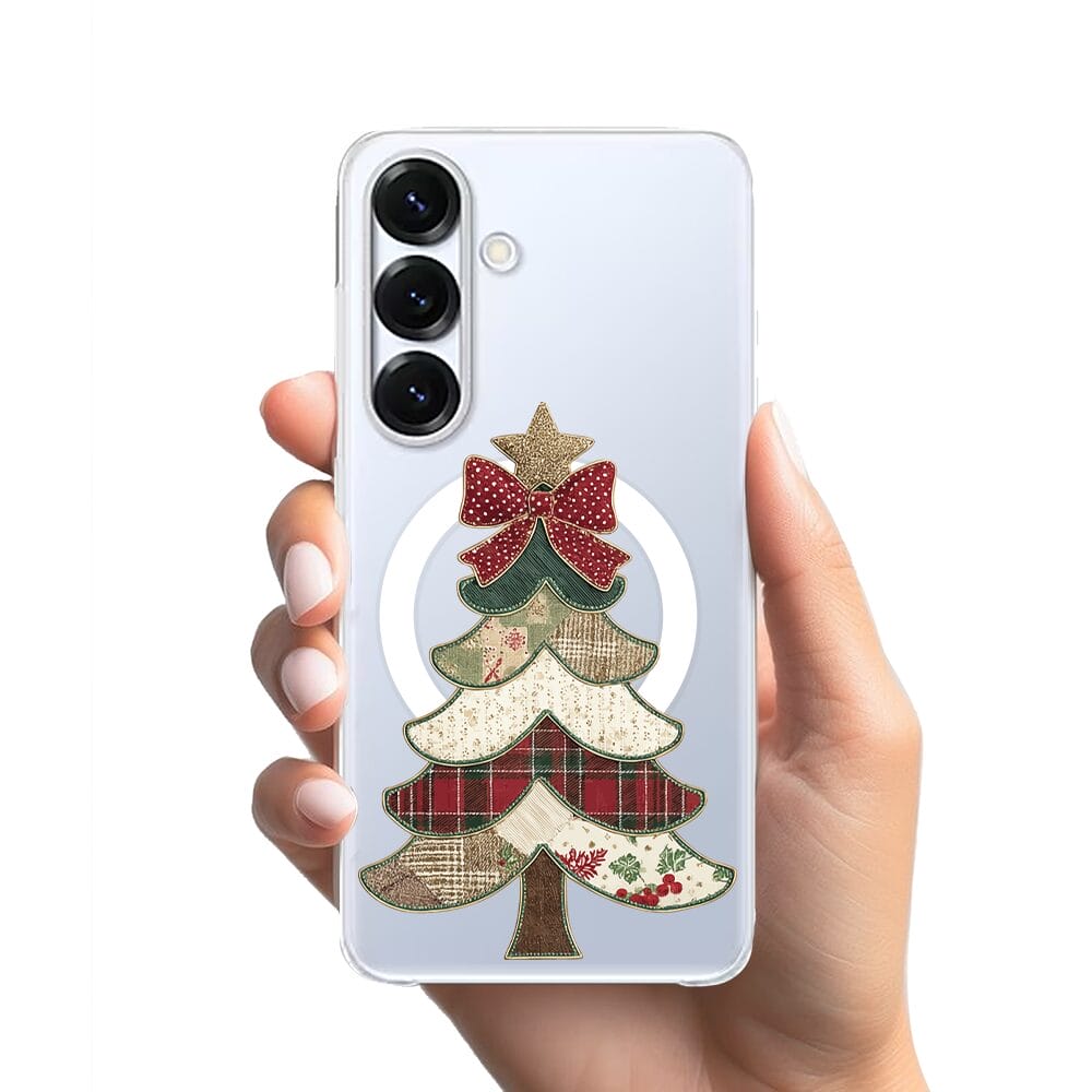Etui do Samsung Galaxy S25 Plus z MagSafe przeźroczyste, silikonowe Flexi, Przytulne święta, Kraciasta choinka