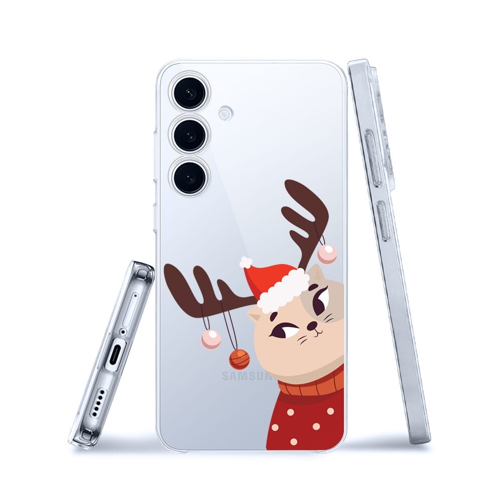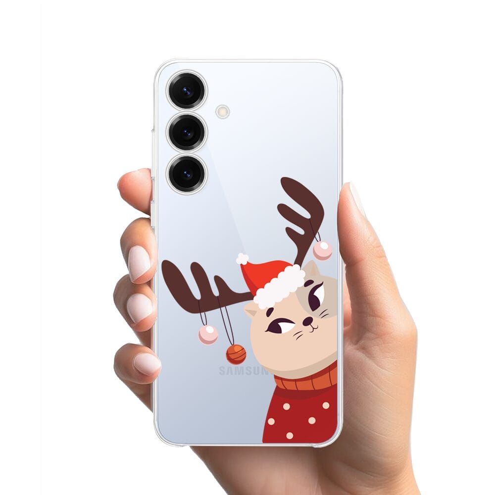 Etui do Samsung Galaxy S25 przeźroczyste, silikonowe Flexi, Kotek przebrany za reniferka