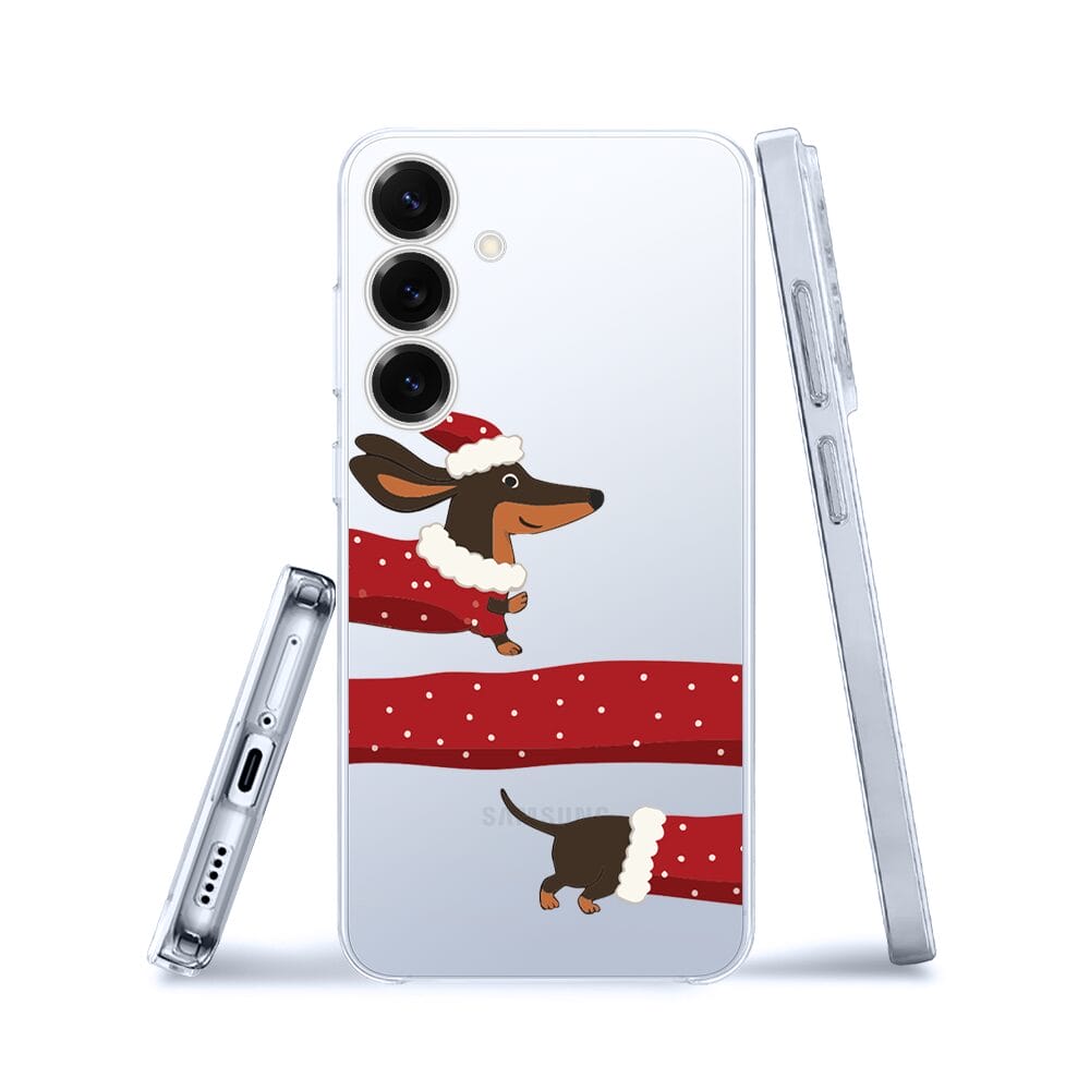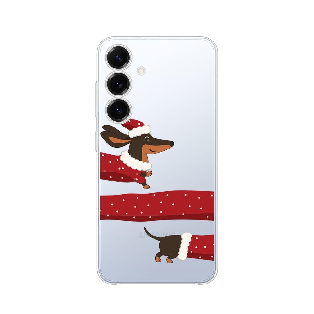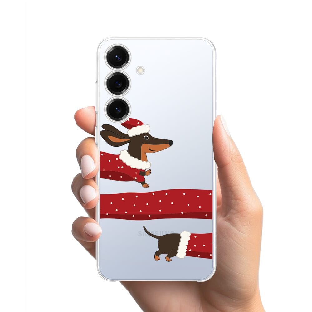 Etui do Samsung Galaxy S25 przeźroczyste, silikonowe Flexi, Przytulne święta, świąteczny jamnik