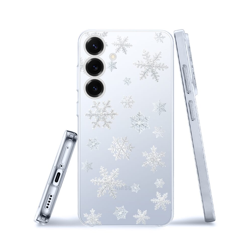 Etui do Samsung Galaxy S25 przeźroczyste, silikonowe Flexi, Zimowa magia, Delikatne płatki śniegu