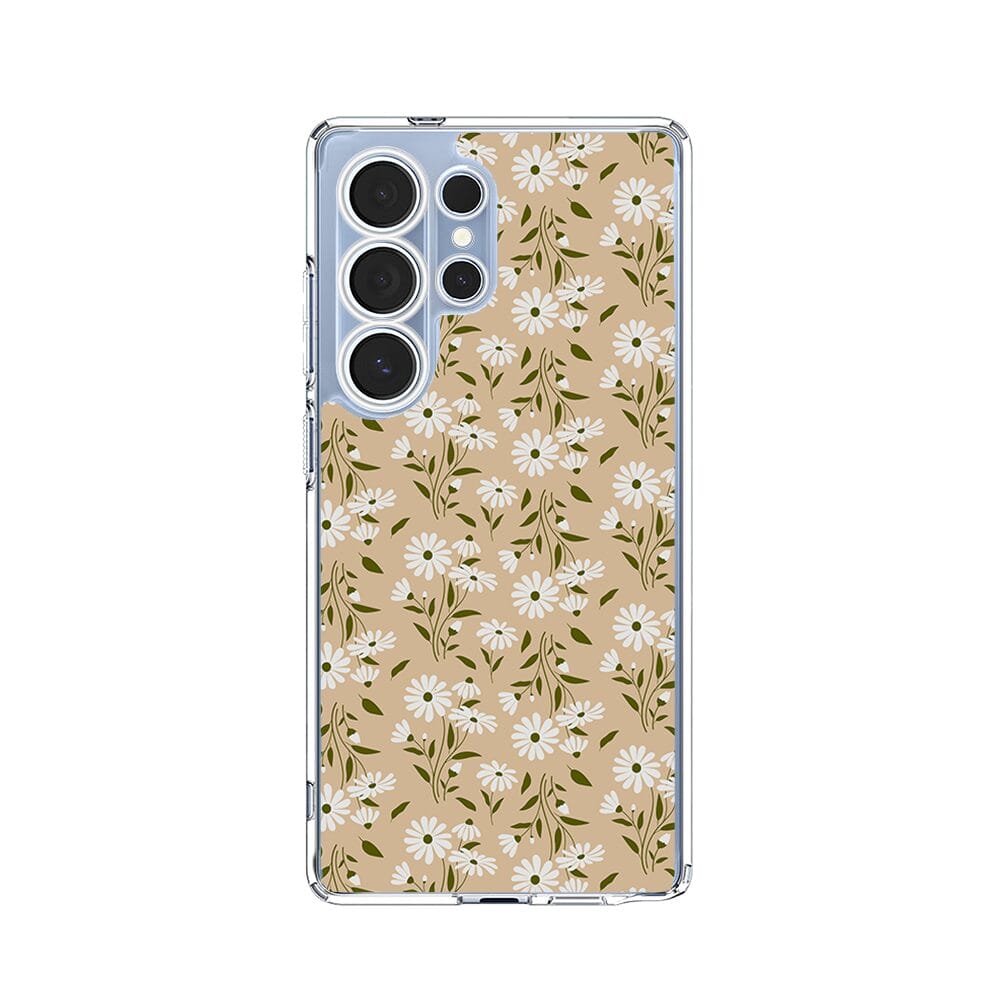 Etui do Samsung Galaxy S25 Ultra przeźroczyste, silikonowe Flexi, delikatne kwiatki na cielistym tle