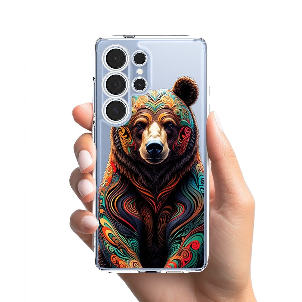 Etui do Samsung Galaxy S25 Ultra przeźroczyste, silikonowe Flexi, Dzika Mandala, Niedźwiedź