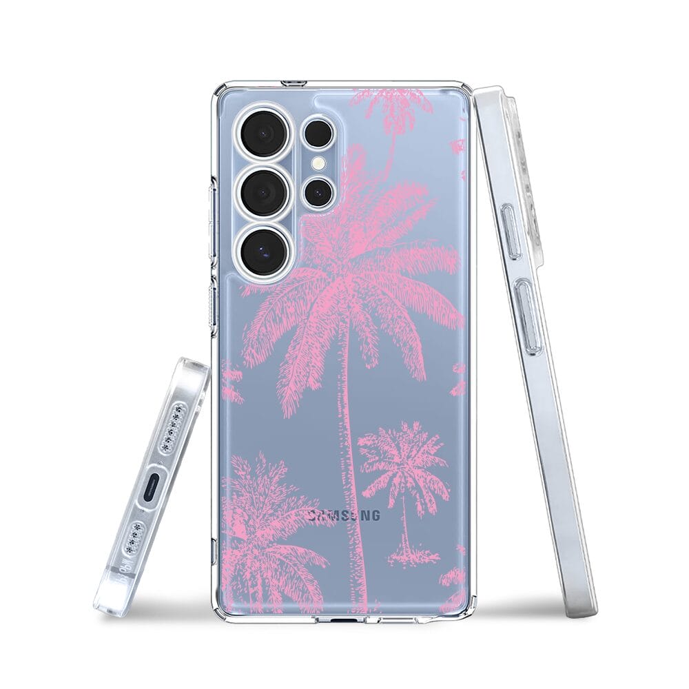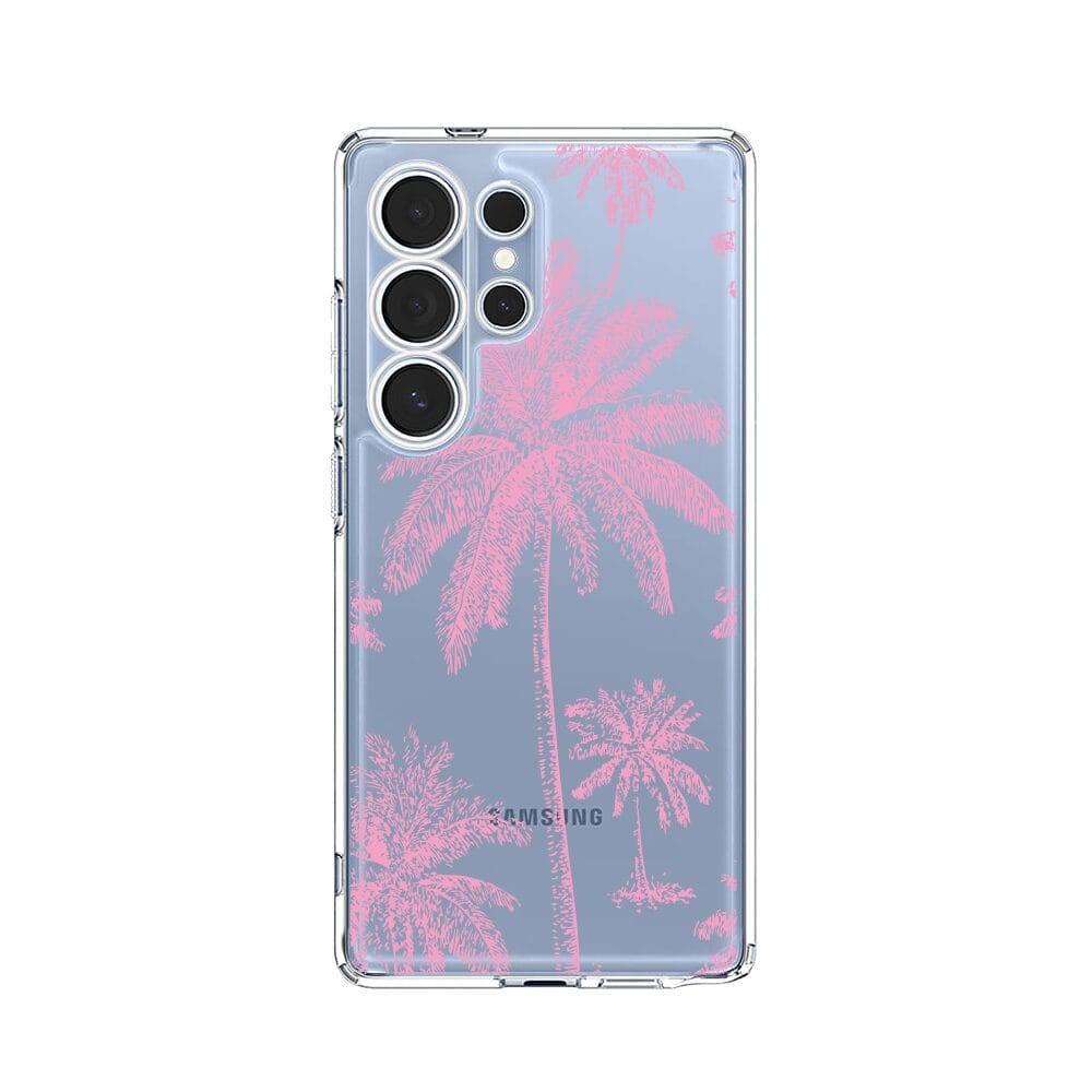 Etui do Samsung Galaxy S25 Ultra przeźroczyste, silikonowe Flexi, Mystic, Różowe palmy