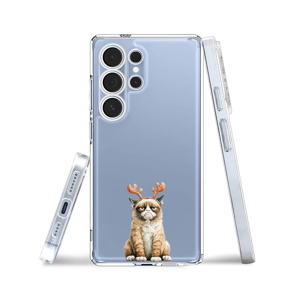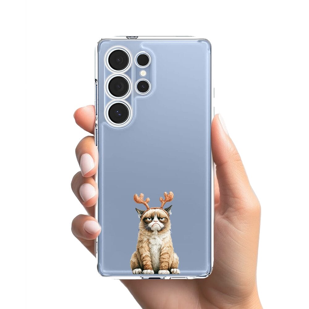 Etui do Samsung Galaxy S25 Ultra przeźroczyste, silikonowe Flexi, Przytulne święta, Kot który nie chciał być reniferem