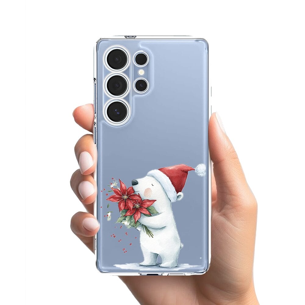 Etui do Samsung Galaxy S25 Ultra przeźroczyste, silikonowe Flexi, Przytulne święta, Miś świąteczny
