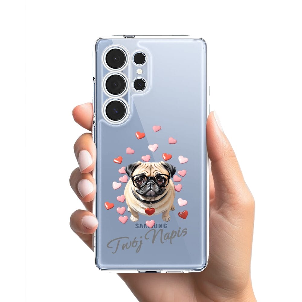 Etui do Samsung Galaxy S25 Ultra przeźroczyste, silikonowe Flexi, Puppy Love, pies rasy Mops