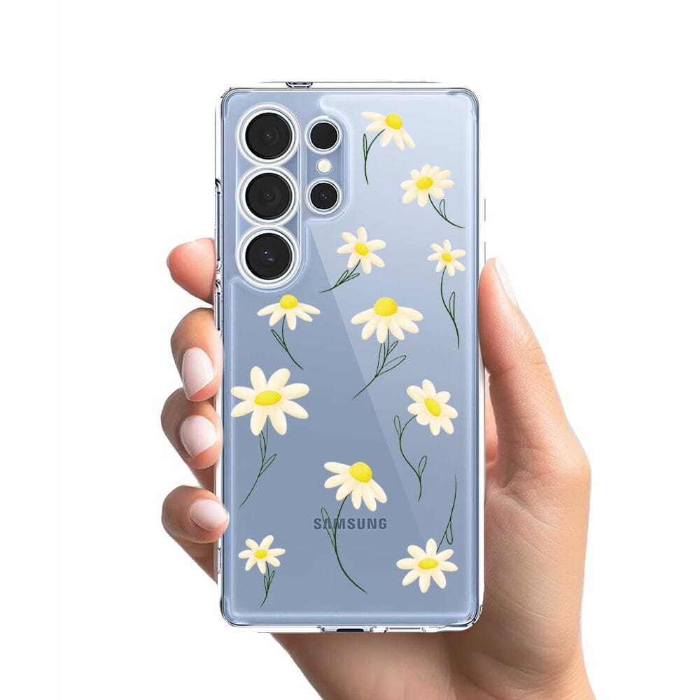 Etui do Samsung Galaxy S25 Ultra przeźroczyste, silikonowe Flexi, stokrotki
