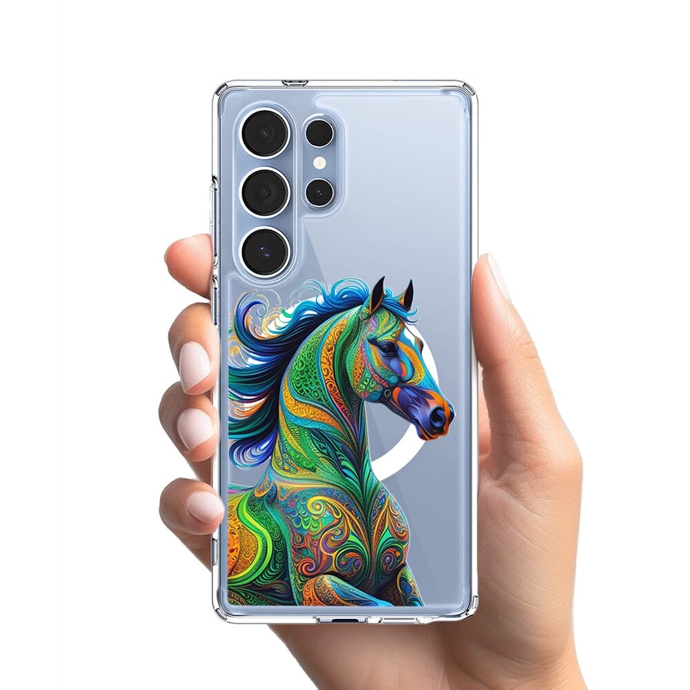 Etui do Samsung Galaxy S25 Ultra z MagSafe przeźroczyste, silikonowe Flexi, Dzika Mandala, Koń