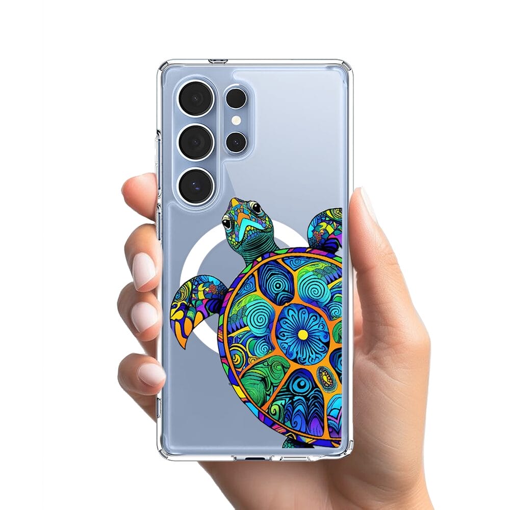 Etui do Samsung Galaxy S25 Ultra z MagSafe przeźroczyste, silikonowe Flexi, Dzika Mandala, Żółw