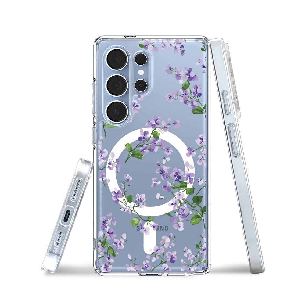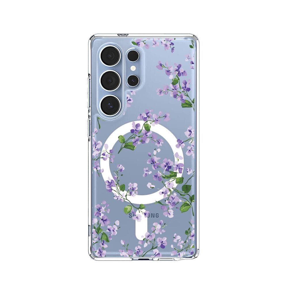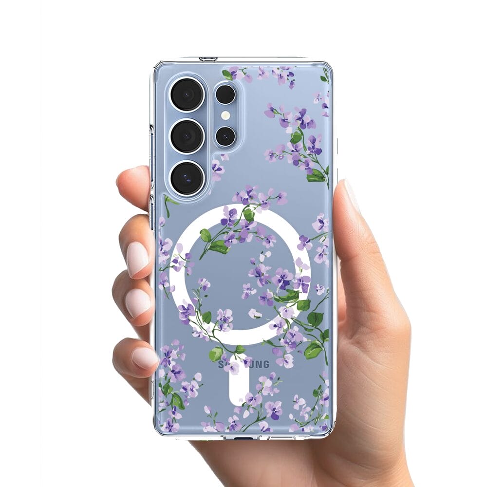Etui do Samsung Galaxy S25 Ultra z MagSafe przeźroczyste, silikonowe Flexi, Fioletowe Bratki