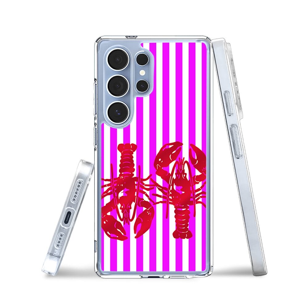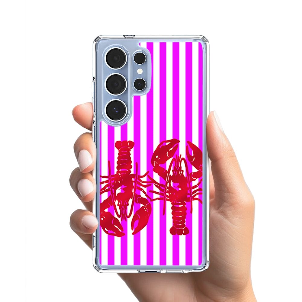 Etui do Samsung Galaxy S25 Ultra z MagSafe przeźroczyste, silikonowe Flexi, kraby z różowymi paskami