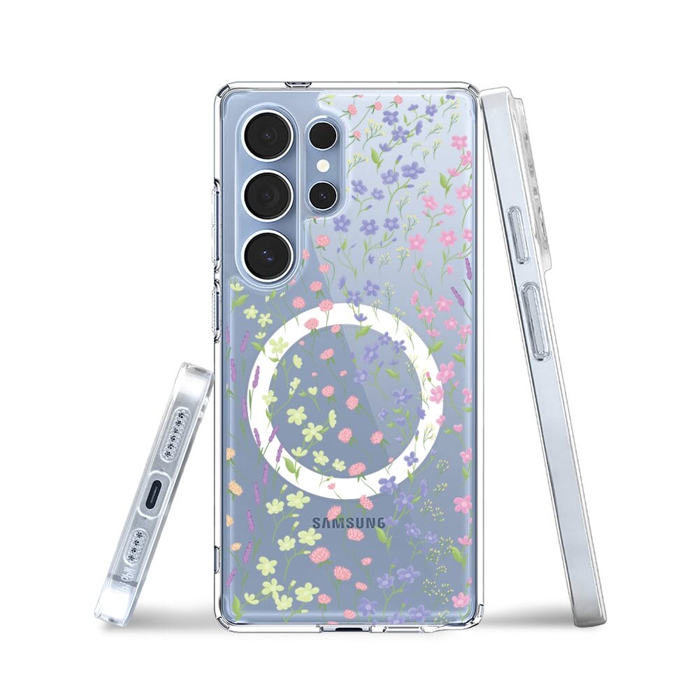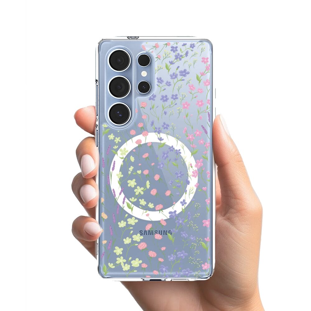 Etui do Samsung Galaxy S25 Ultra z MagSafe przeźroczyste, silikonowe Flexi, kwiaty polne