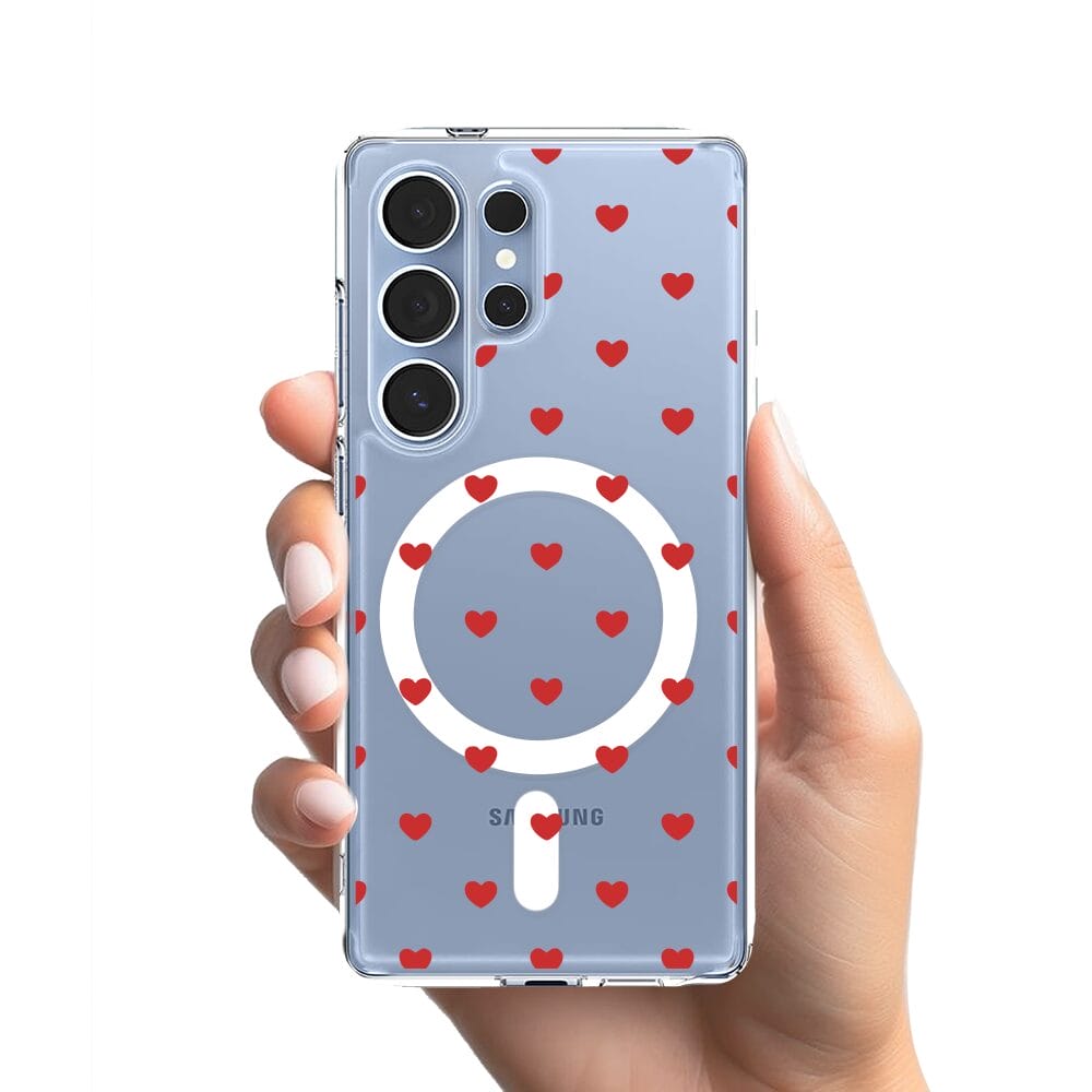 Etui do Samsung Galaxy S25 Ultra z MagSafe przeźroczyste, silikonowe Flexi, Mini Patterns, Serduszka