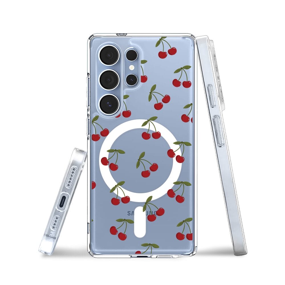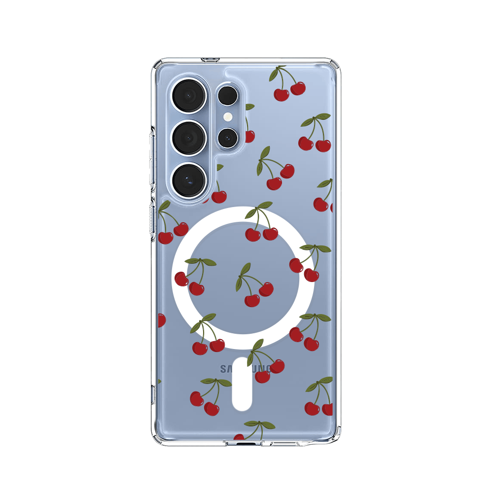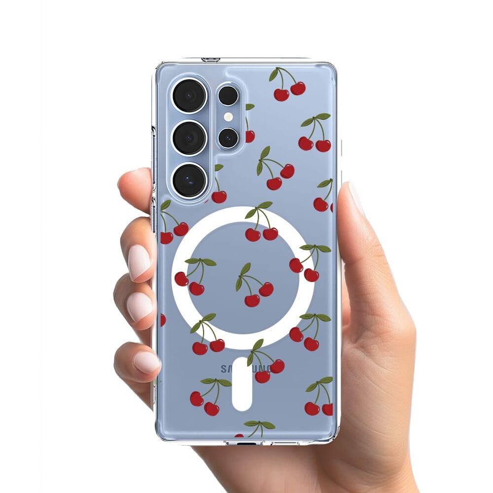 Etui do Samsung Galaxy S25 Ultra z MagSafe przeźroczyste, silikonowe Flexi, Mini Patterns, Wiśnie