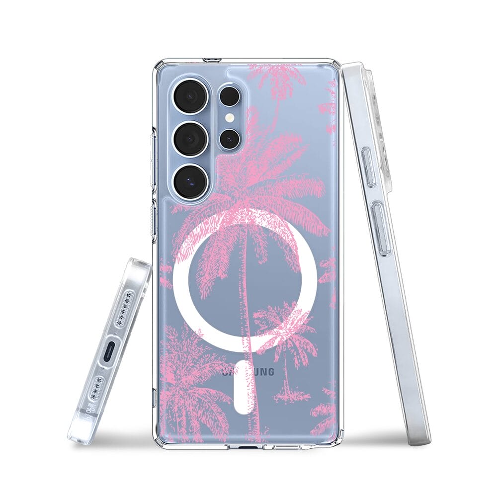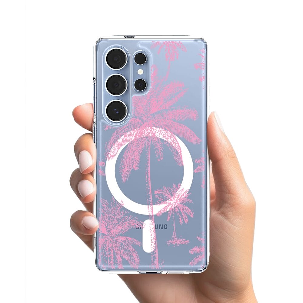 Etui do Samsung Galaxy S25 Ultra z MagSafe przeźroczyste, silikonowe Flexi, Mystic, Różowe palmy