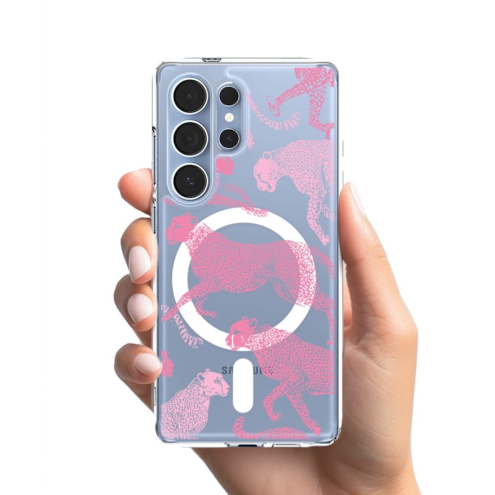 Etui do Samsung Galaxy S25 Ultra z MagSafe przeźroczyste, silikonowe Flexi, Mystic, Różowe pumy