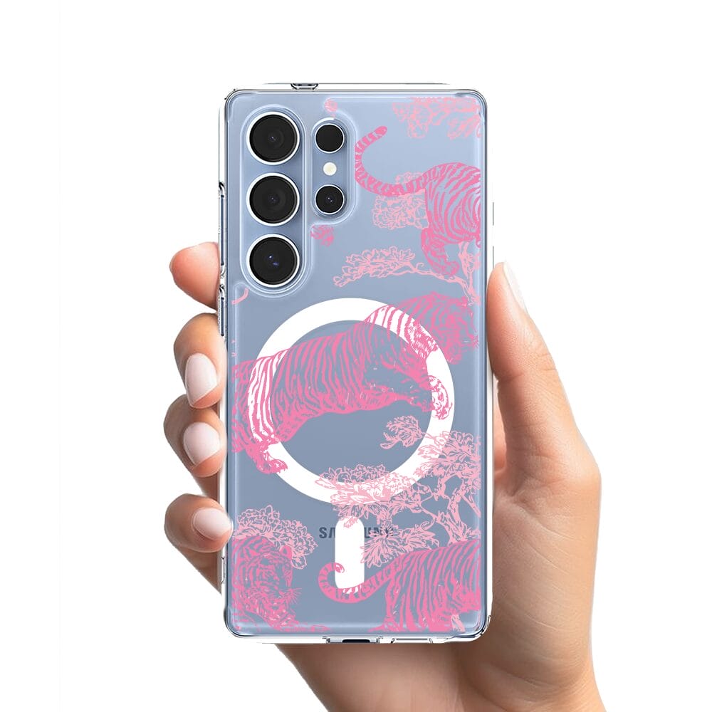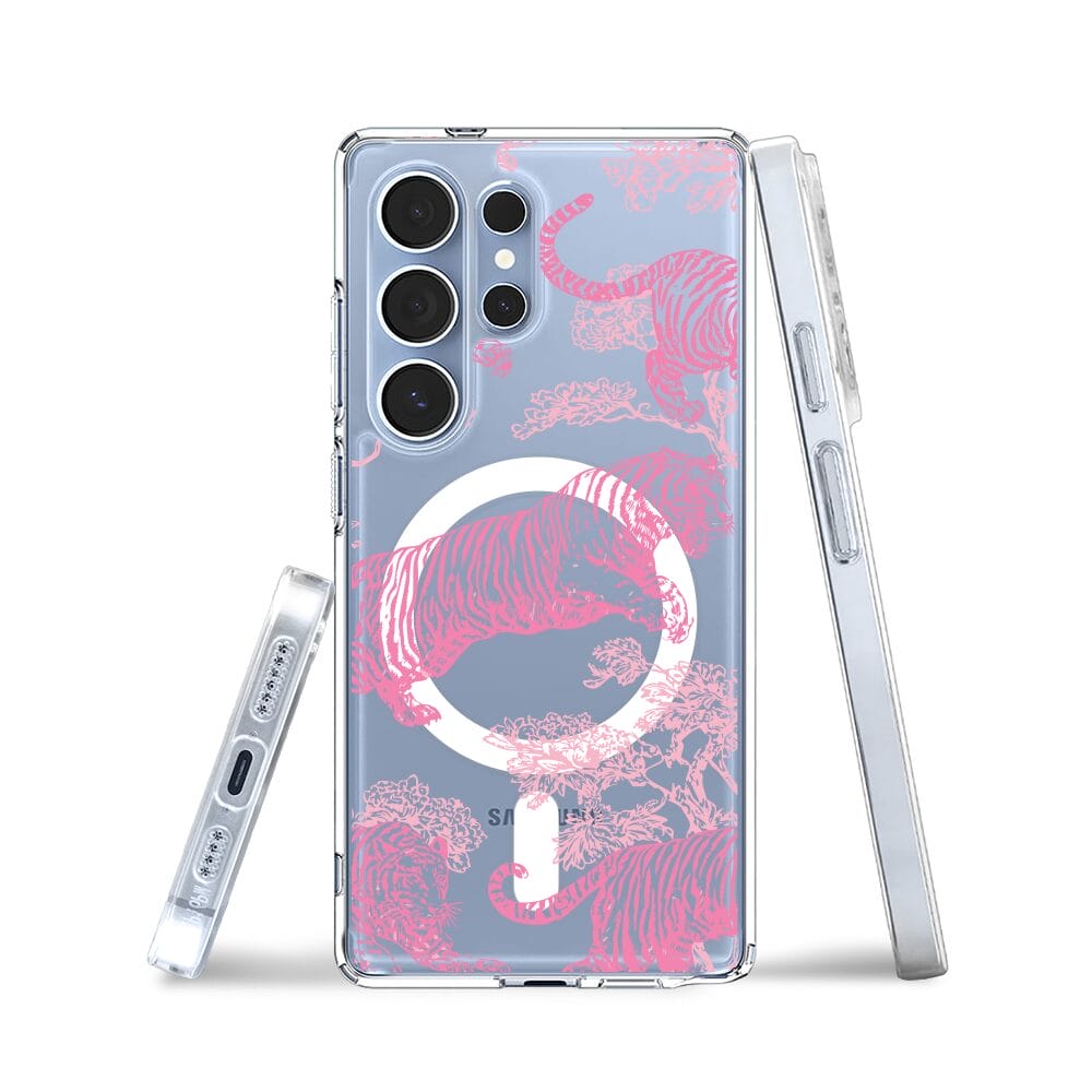 Etui do Samsung Galaxy S25 Ultra z MagSafe przeźroczyste, silikonowe Flexi, Mystic, Różowe tygrysy