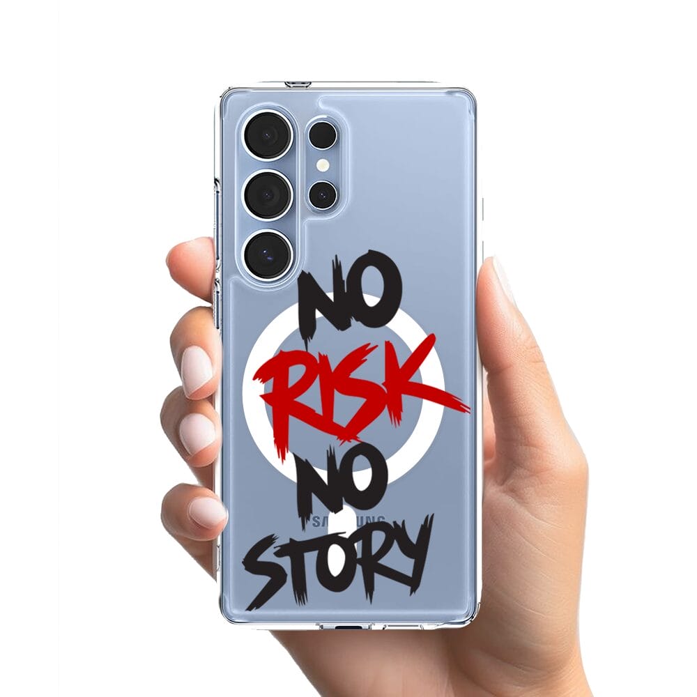 Etui do Samsung Galaxy S25 Ultra z MagSafe przeźroczyste, silikonowe Flexi, Positive Vibes, No Risk No Story