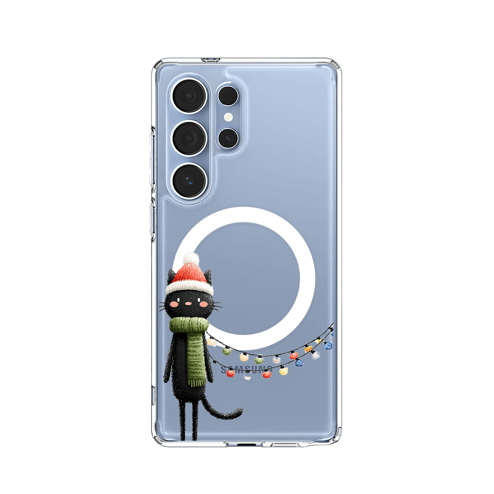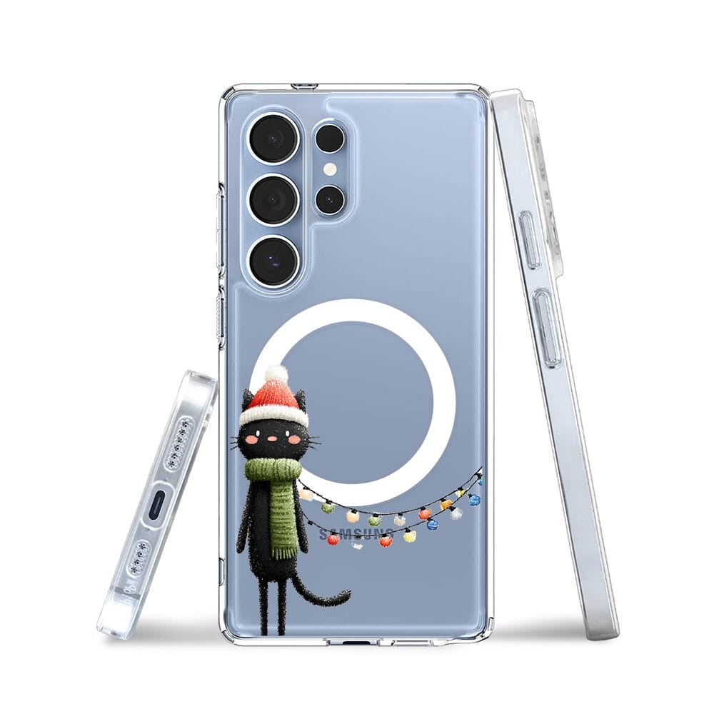 Etui do Samsung Galaxy S25 Ultra z MagSafe przeźroczyste, silikonowe Flexi, Przytulne święta, Kot przebrany za elfa
