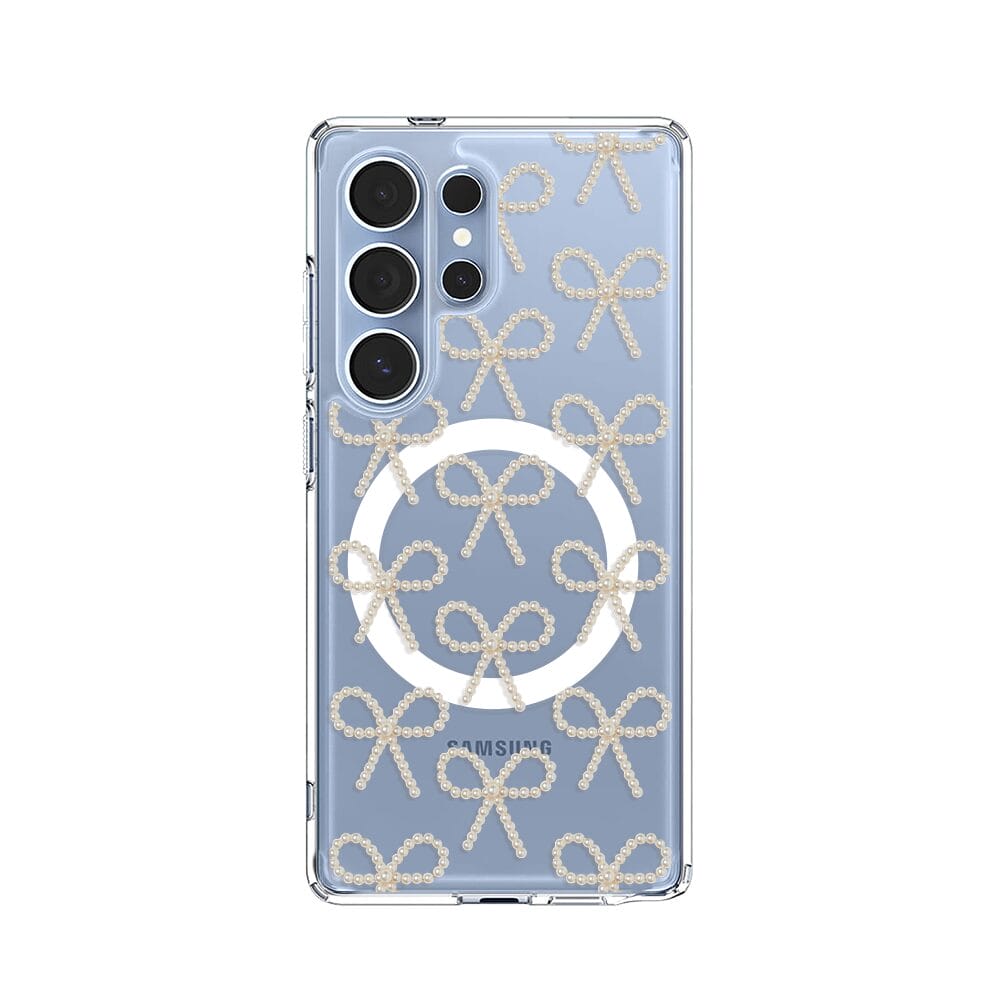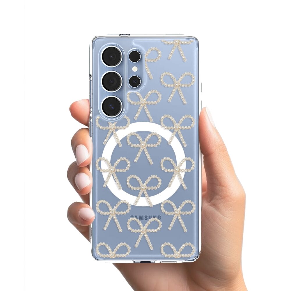Etui do Samsung Galaxy S25 Ultra z MagSafe przeźroczyste, silikonowe Flexi, Przytulne święta, złote kokardki