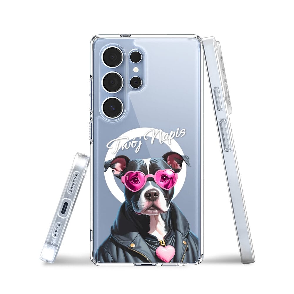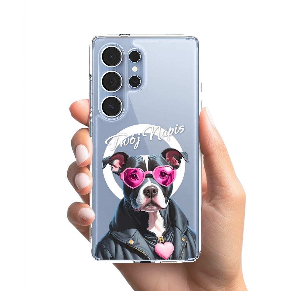 Etui do Samsung Galaxy S25 Ultra z MagSafe przeźroczyste, silikonowe Flexi, Puppy Love, pies rasy Amstaff