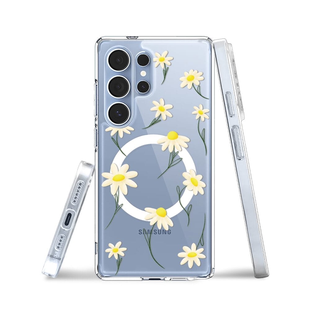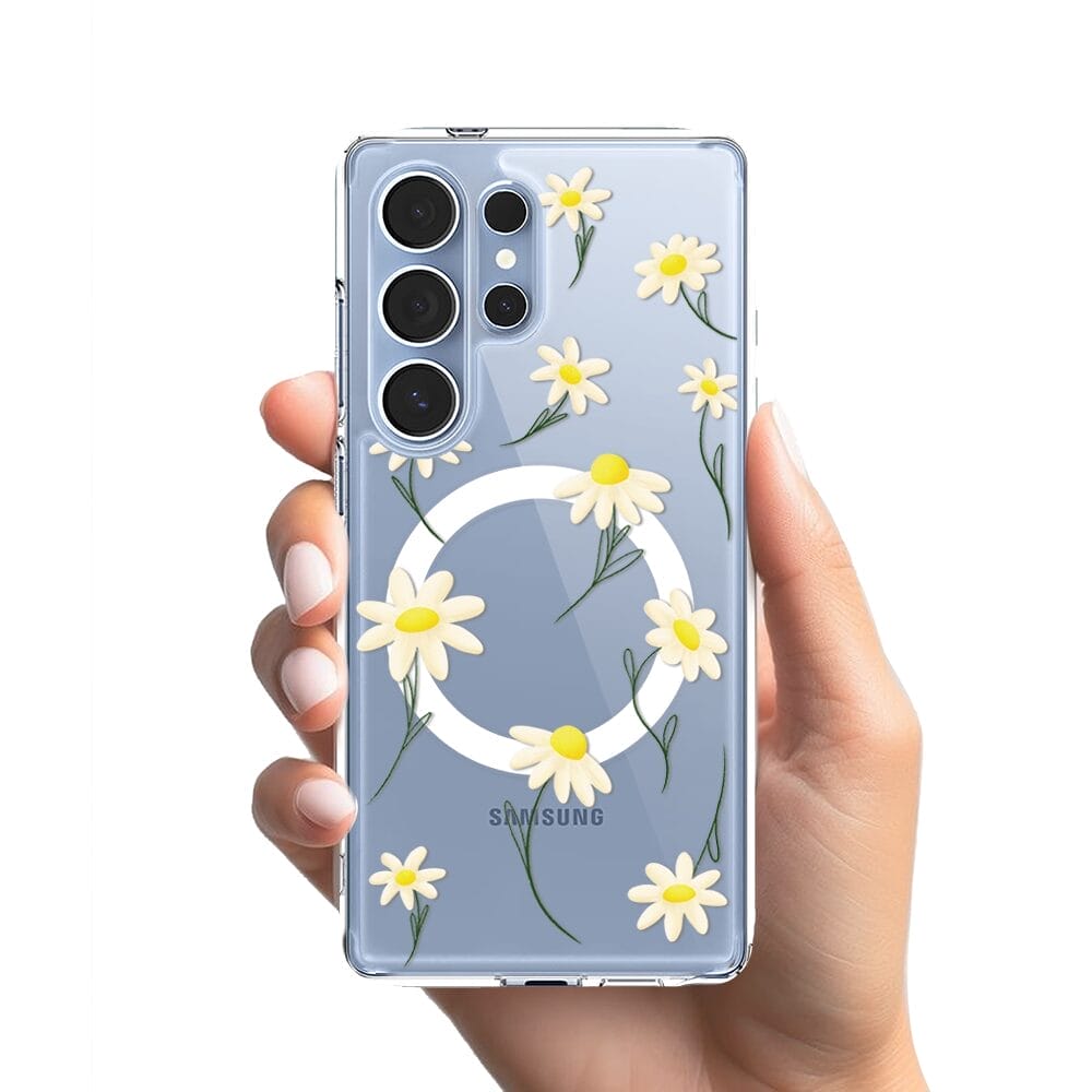Etui do Samsung Galaxy S25 Ultra z MagSafe przeźroczyste, silikonowe Flexi, stokrotki