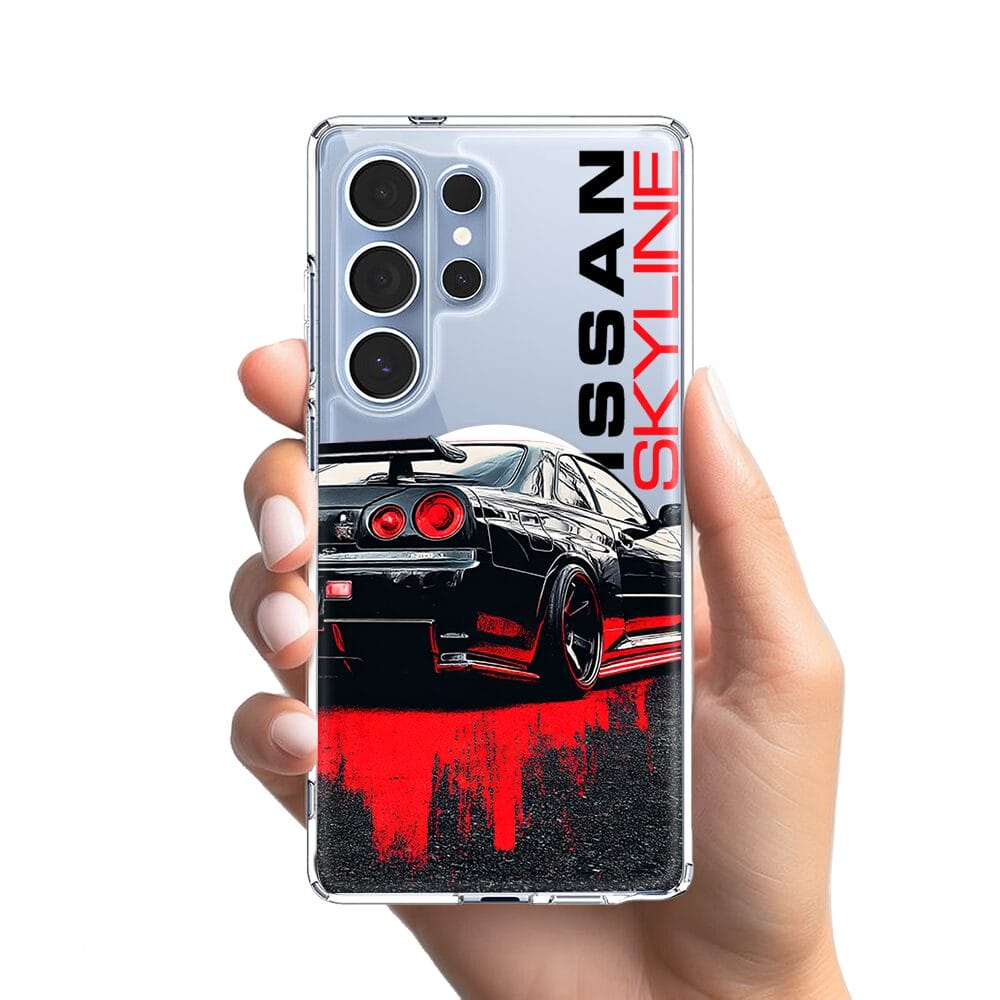 Etui do Samsung Galaxy S25 Ultra z MagSafe przeźroczyste, silikonowe Flexi, Szybkie Auta, czarny Skyline