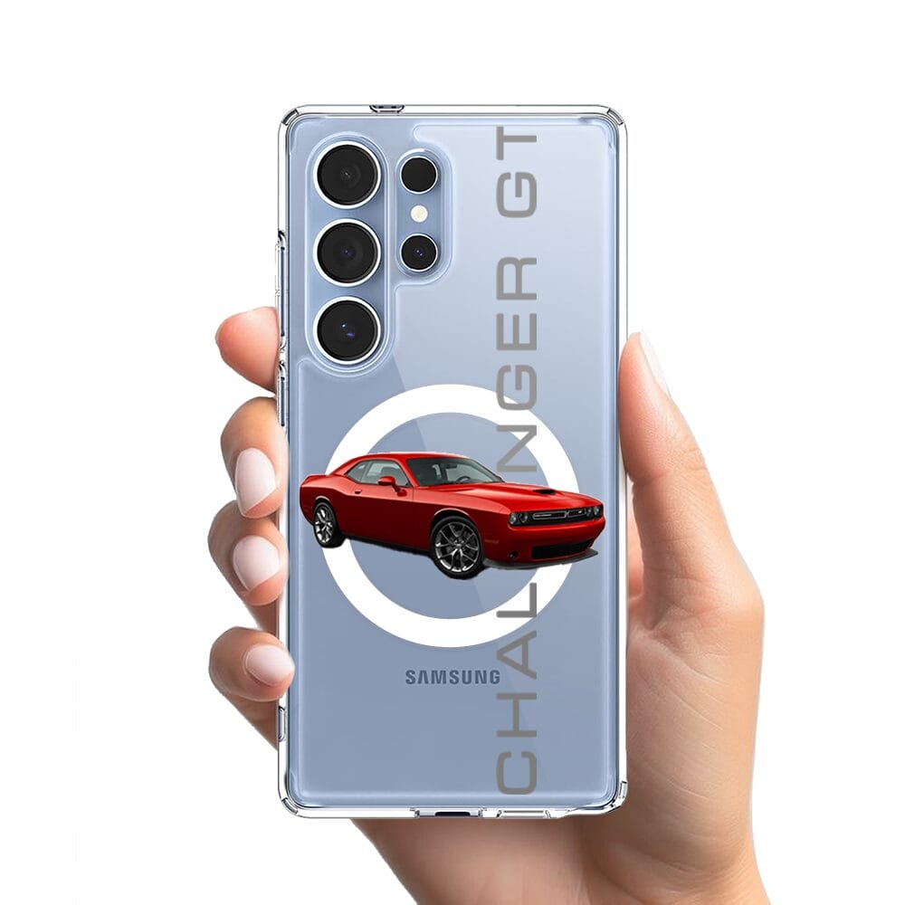 Etui do Samsung Galaxy S25 Ultra z MagSafe przeźroczyste, silikonowe Flexi, Szybkie Auta, czerwony Challenger GT