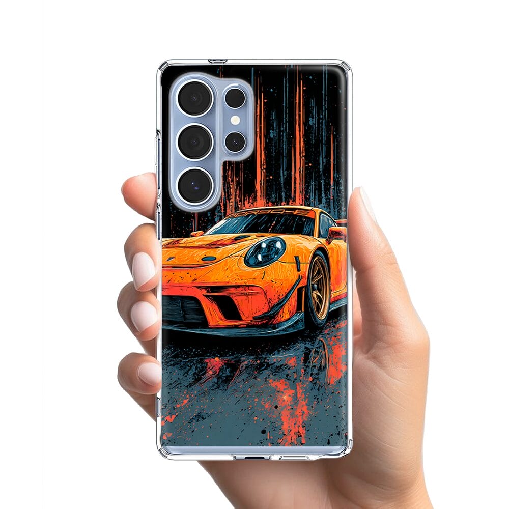 Etui do Samsung Galaxy S25 Ultra z MagSafe przeźroczyste, silikonowe Flexi, Szybkie Auta, Pomarańczowa 911