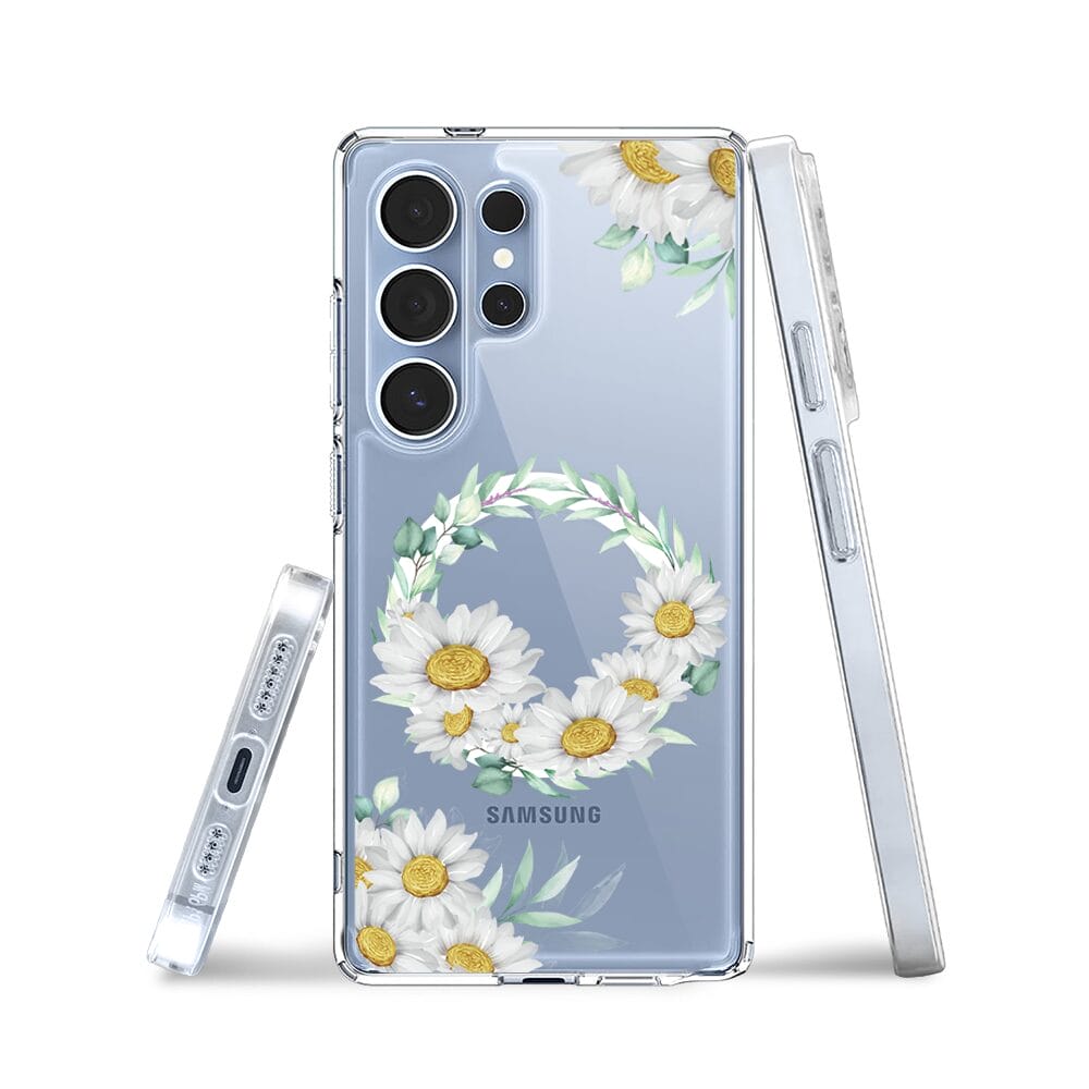 Etui do Samsung Galaxy S25 Ultra z MagSafe przeźroczyste, silikonowe Flexi, wianek stokrotek