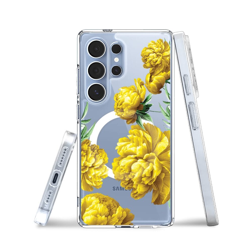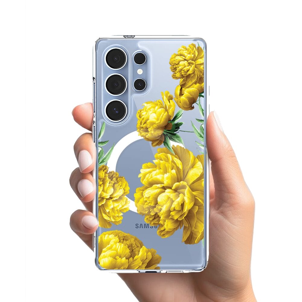Etui do Samsung Galaxy S25 Ultra z MagSafe przeźroczyste, silikonowe Flexi, żółte piwonie