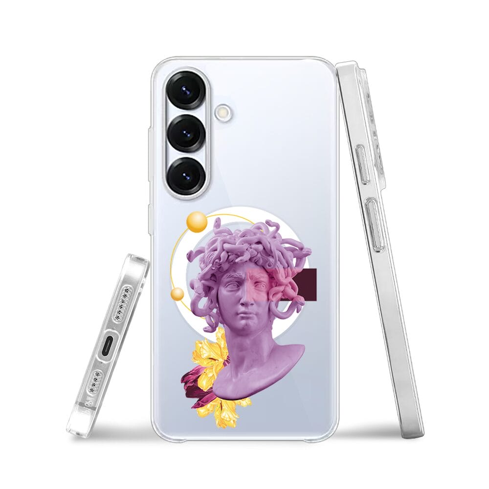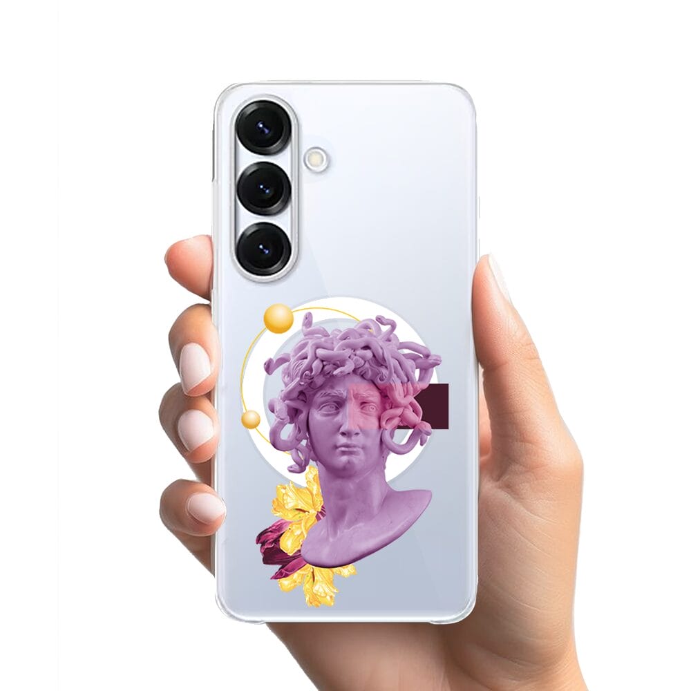 Etui do Samsung Galaxy S25 z MagSafe przeźroczyste, silikonowe Flexi, antyczna figura, meduza